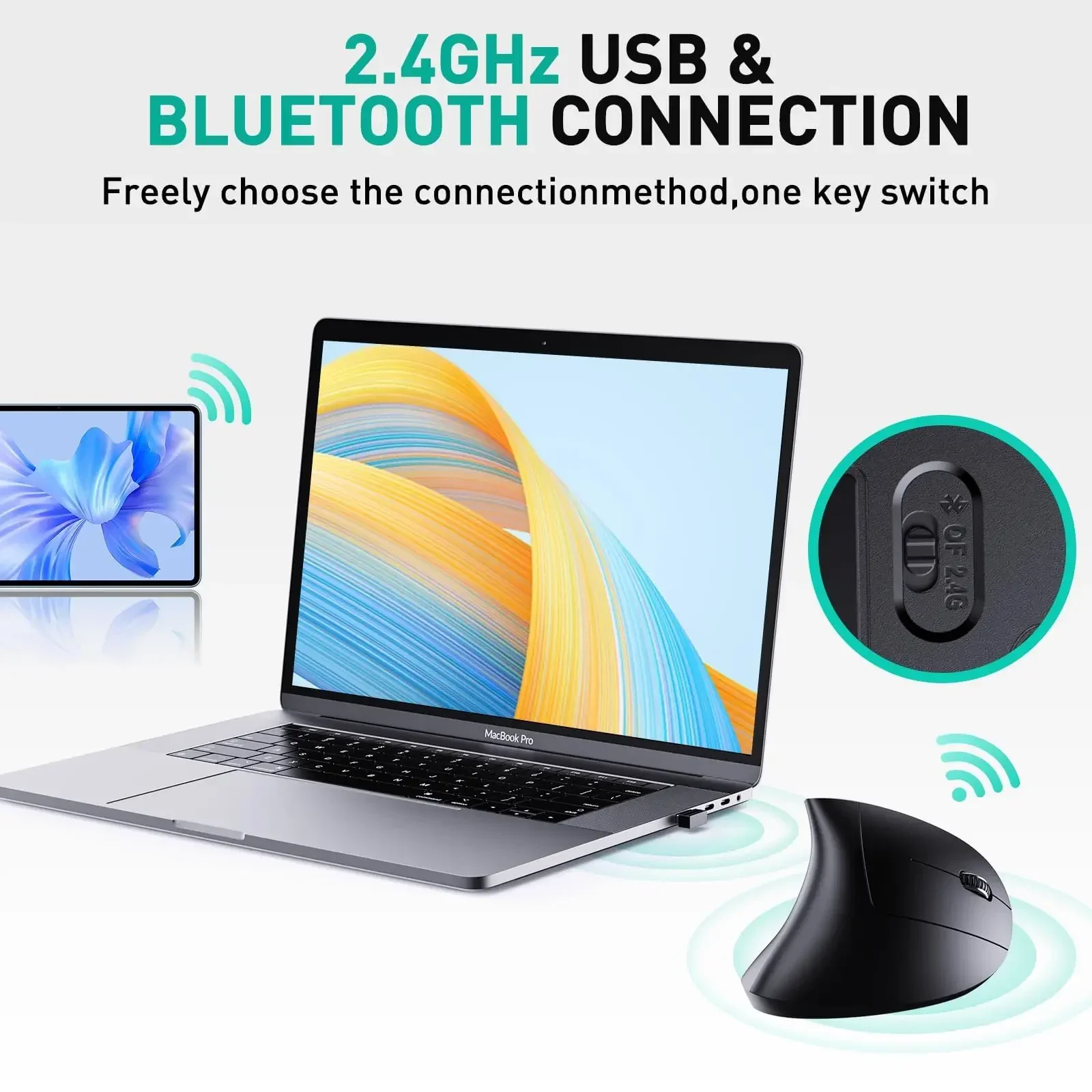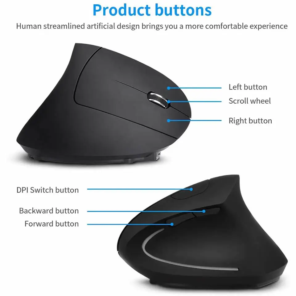 - Features 6: Vertical Mouse wireless