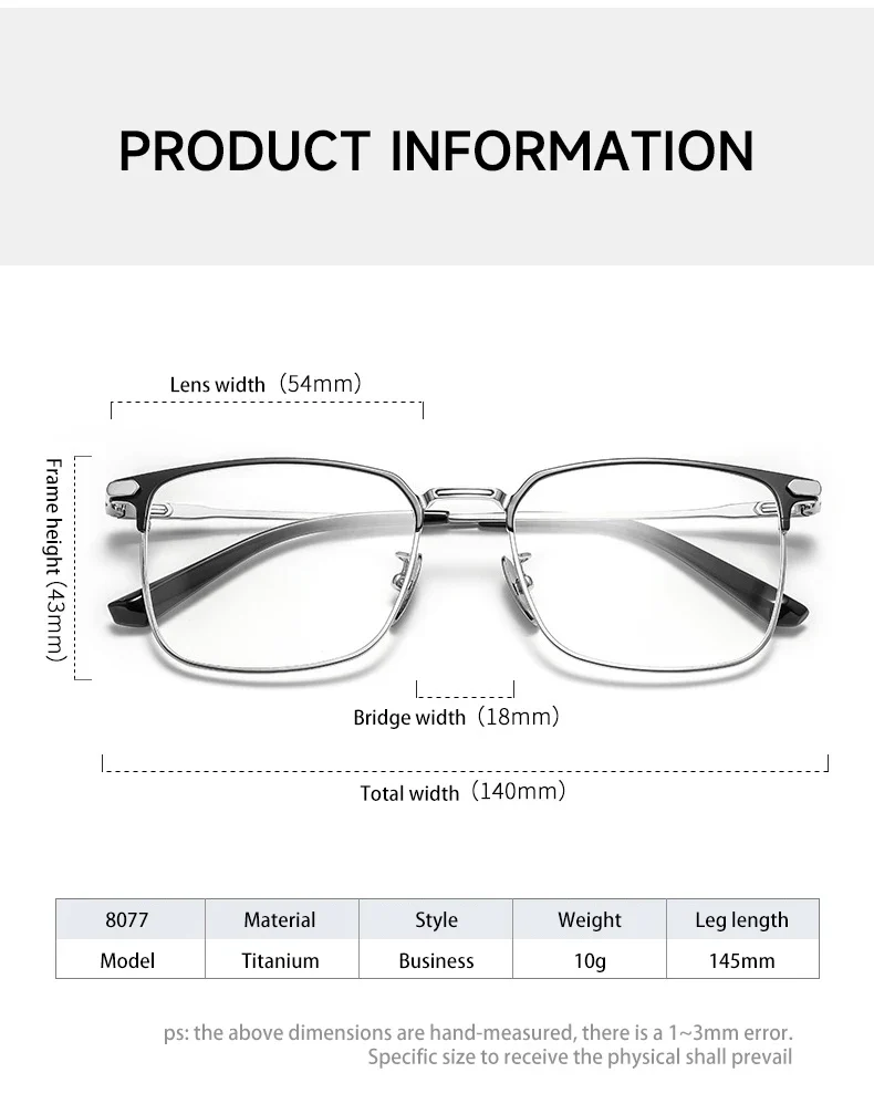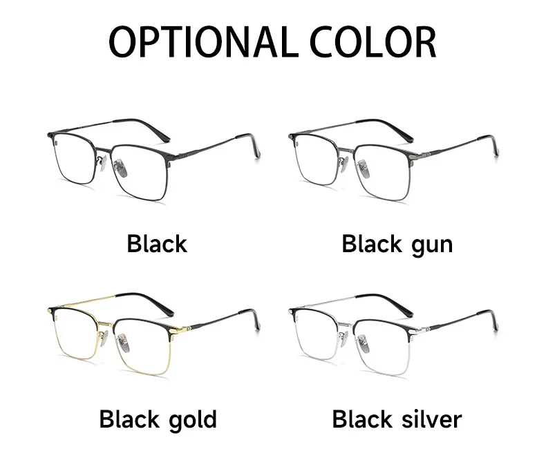 VICKY Fashion Square Pure Titanium Frame Simple Design Men’s Anti-blue Light Glasses Can Be Customized Prescription 8007TS