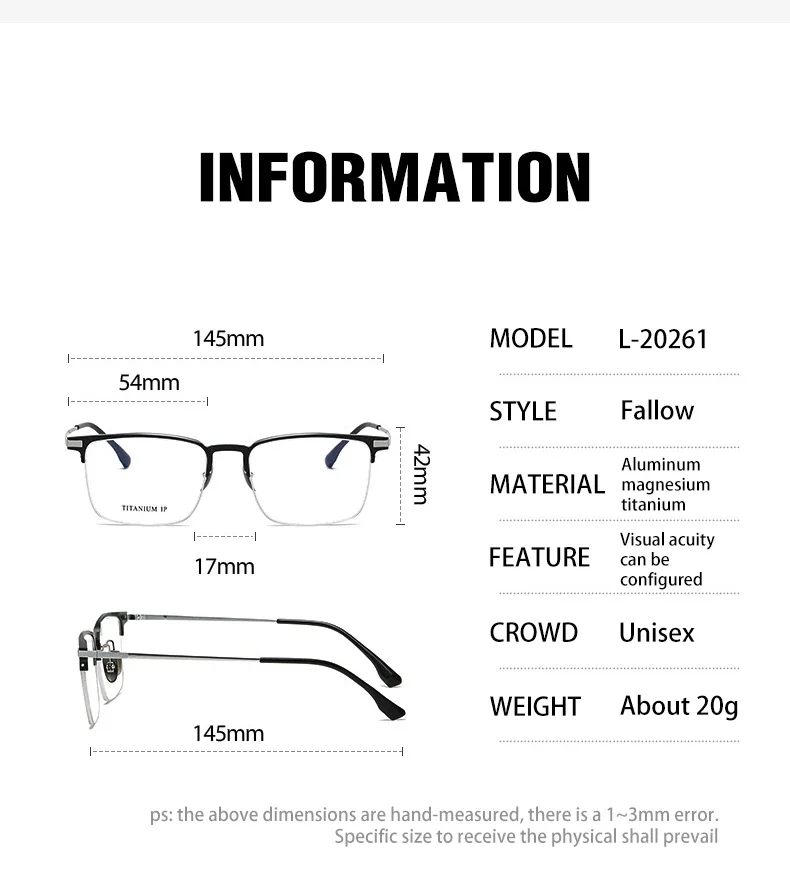 | Frame Color | L-20261-BLACK, L-20261-BLACK GOLD, L-20261-BLACK GREY, L-20261-BLACK SILVER, L-20261-GREY SILVER |
