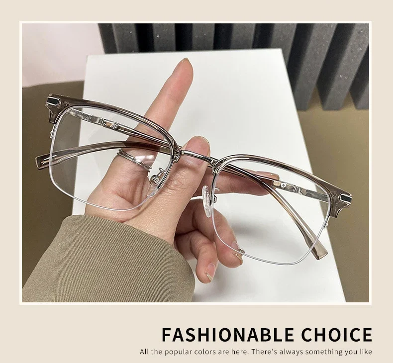 VICKY Men’s Business Classic Half Frame Anti Blue Light Reading Glasses Myopia Hyperopia Customizable Prescription TR2242