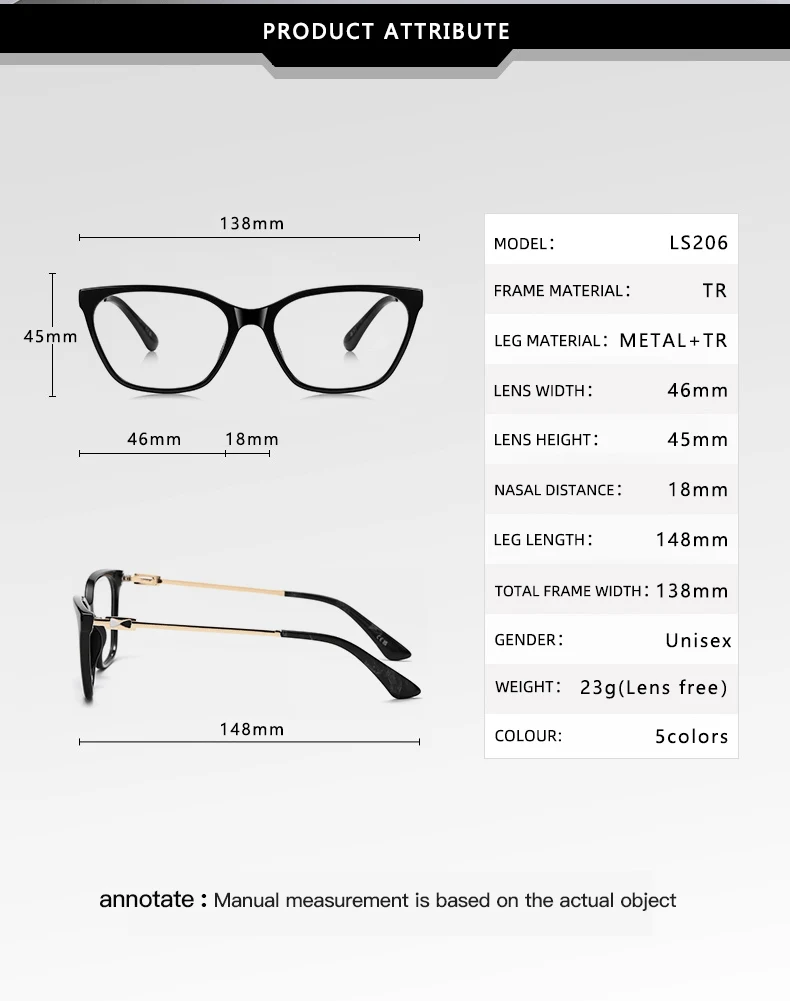 | Frame Color | LS206-C1, LS206-C2, LS206-C3, LS206-C4, LS206-C5 |