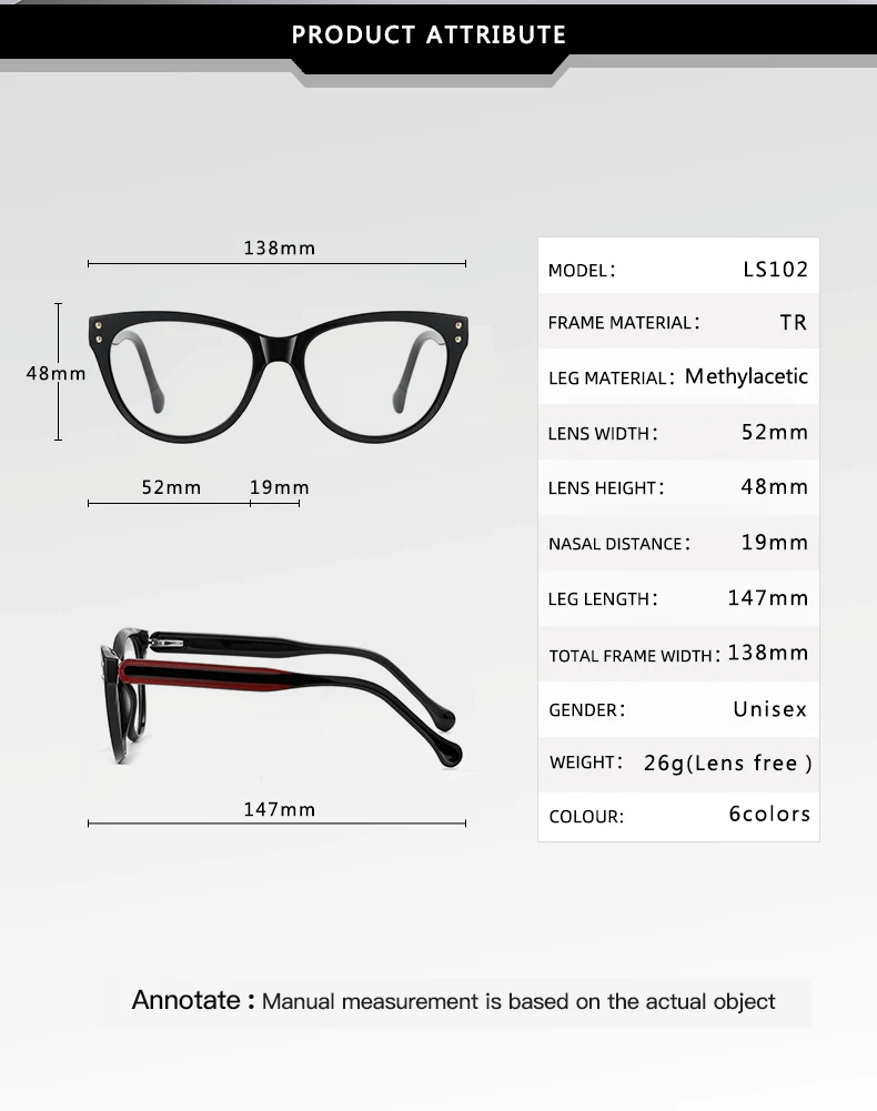 | Frame Color | LS102-C1, LS102-C2, LS102-C3, LS102-C4, LS102-C5, LS102-C6 |