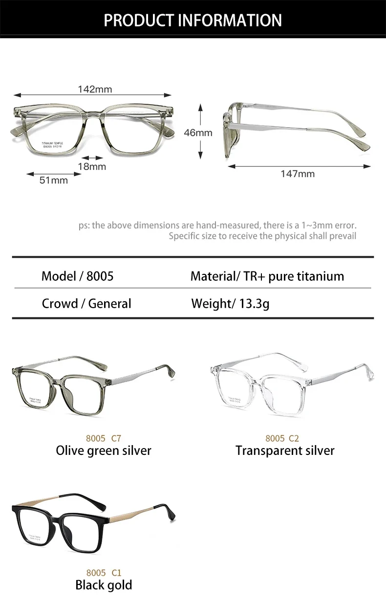 | Frame Color | 8005-C1, 8005-C2, 8005-C7 |