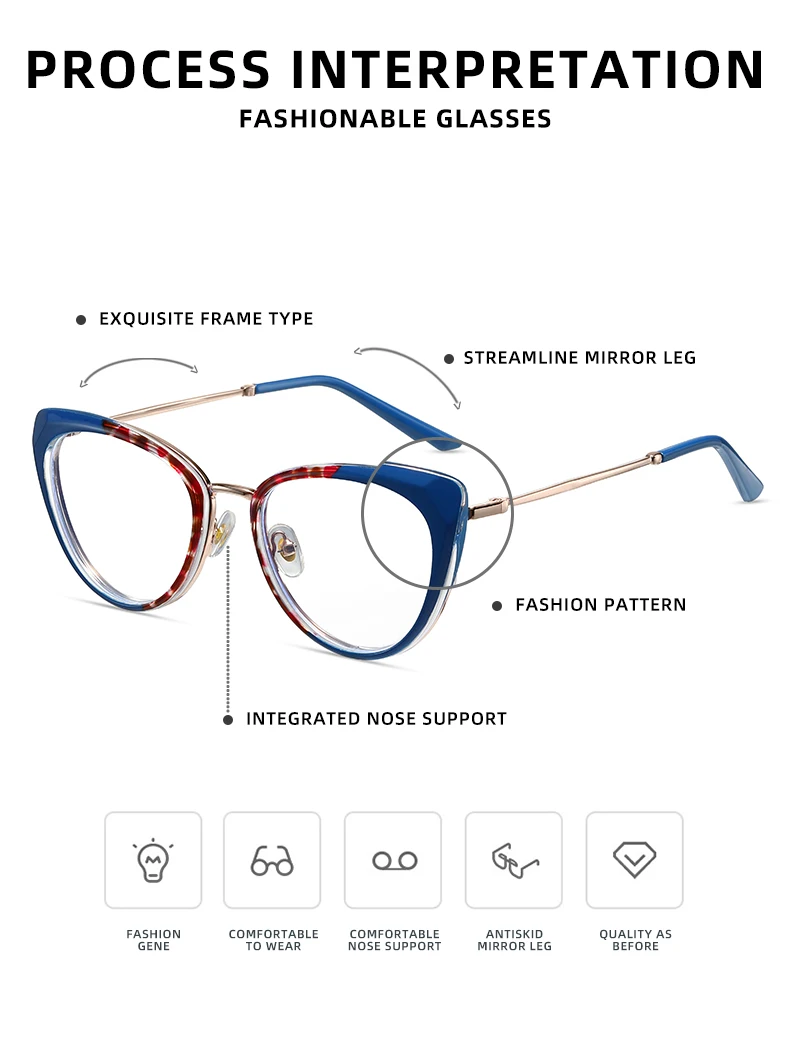 VICKY New Simple Personalized Fashion Cat’s Eye Frame Design Women’s Anti-Blue Light Reading Glasses Customizable Prescription
