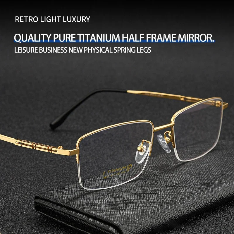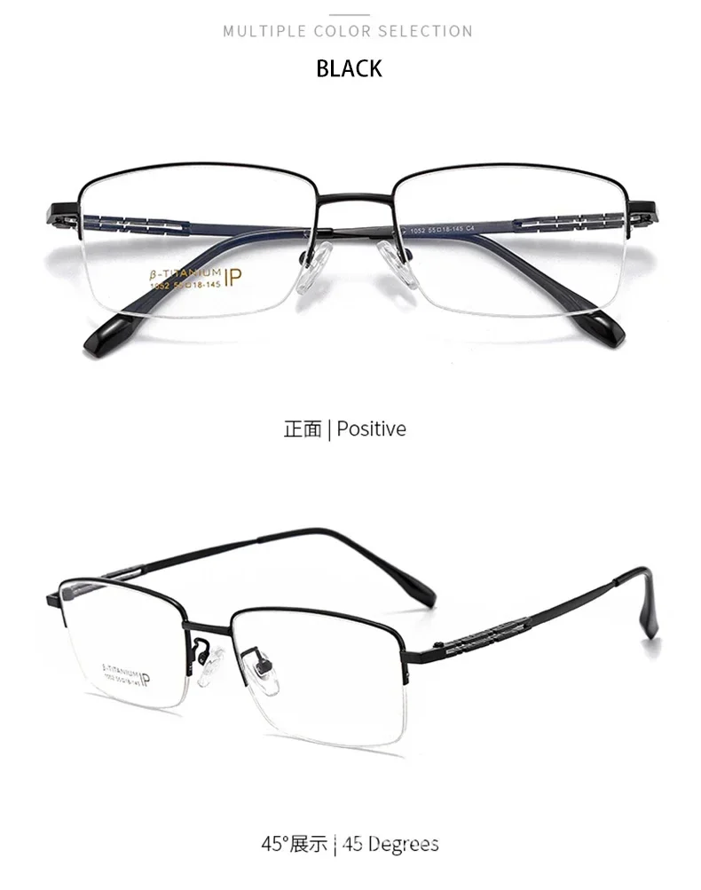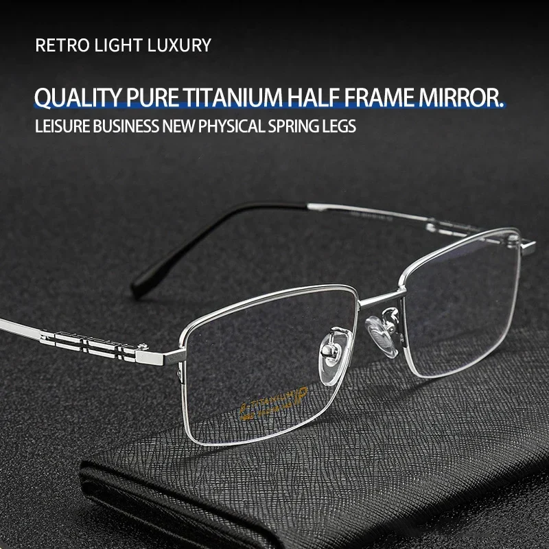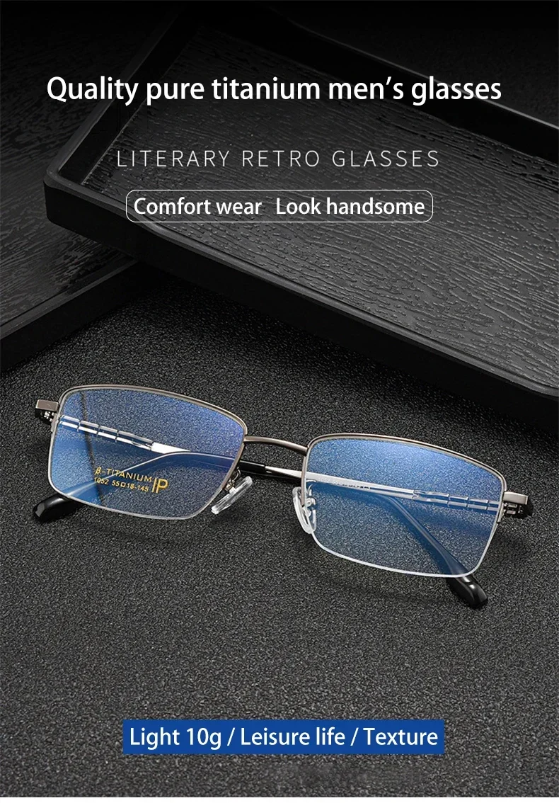 VICKY Pure Titanium Business Men’s Half-rim Reading Glasses Men Fashion Simple Design Anti-blue Light Prescription Glasses 1052