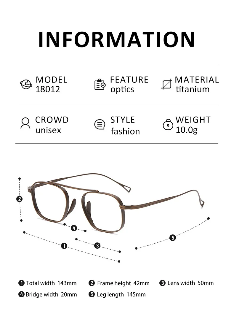 VICKY Retro New Design Pure Titanium Eyeglass Frames Anti-Blue Light Nearsighted Eye Frame Customizable Prescription KMN9501-CT