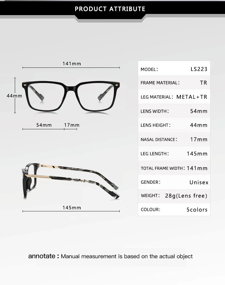 VICKY Simple Classic Geometric Square Frame Design Anti-Blue Light Reading Glasses Men Customizable Myopia Prescription LS223