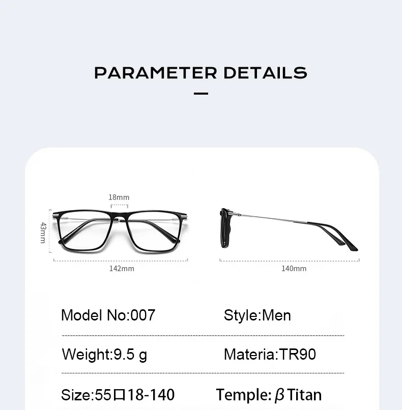 VICKY Titanium Classic Men’s Square Frames Anti-blue Light Reading Glasses Myopia Can Be Customized Prescription Glasses 007