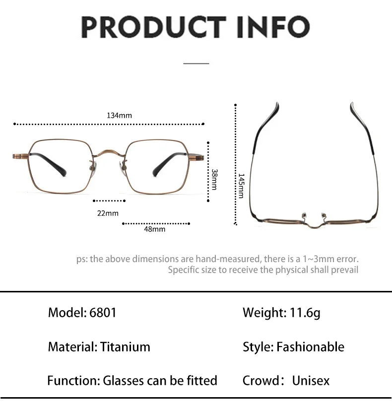 VICKY Ultra-light Pure Titanium Myopia Frames Simple Men’s Small Square Anti-blue Light Glasses Can Be Customized Prescription