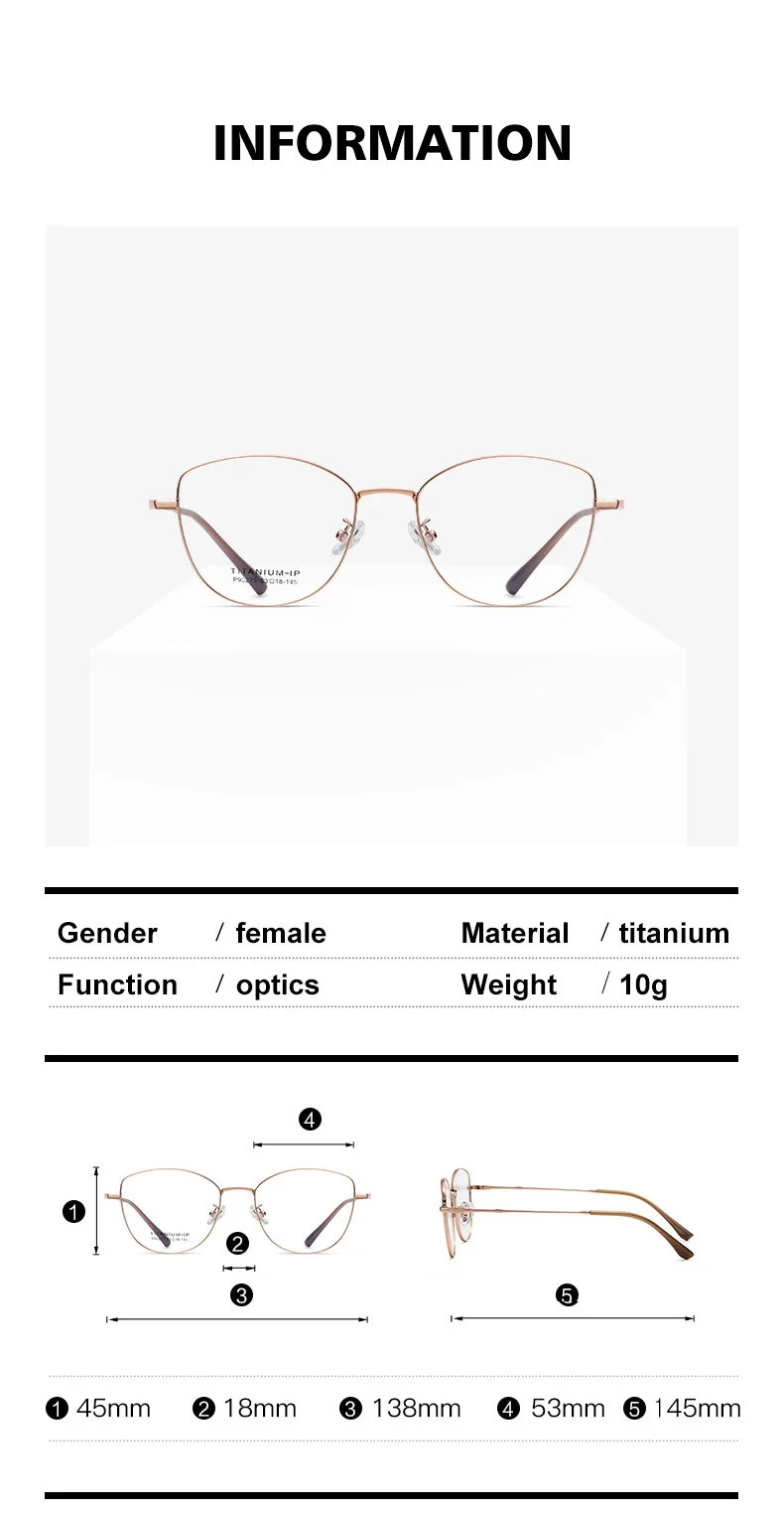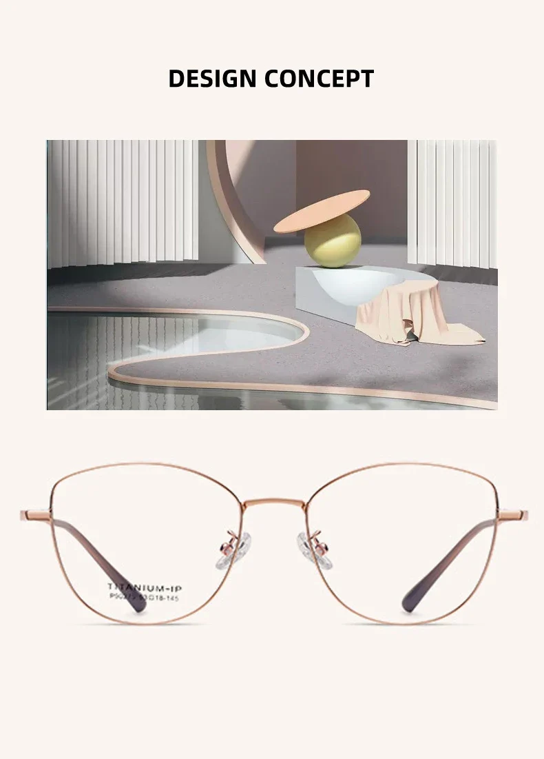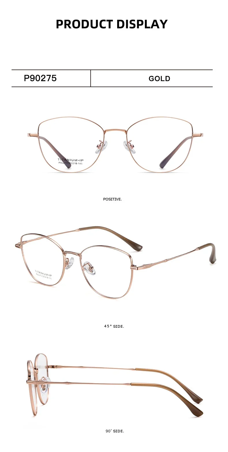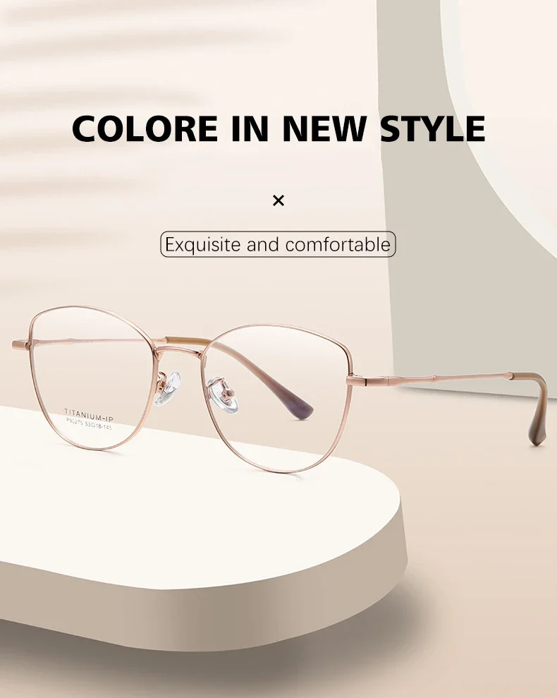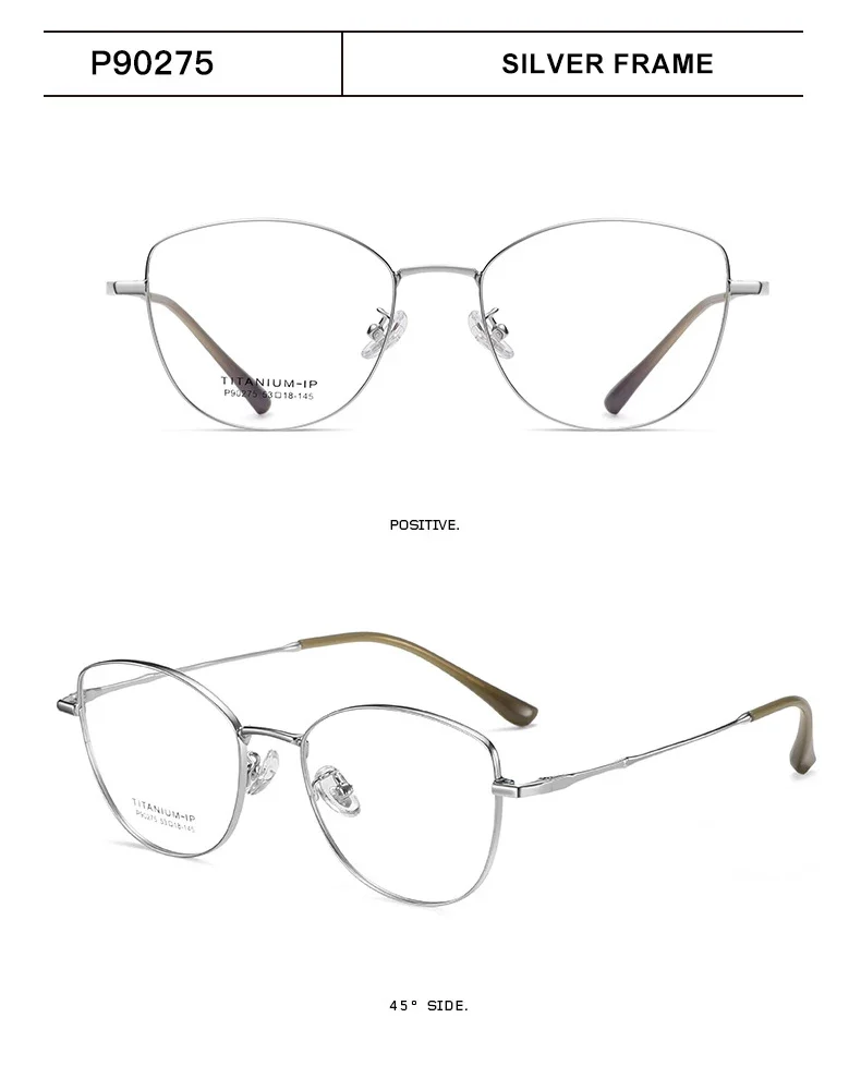 VICKY Ultra-Lightweight Pure Titanium Cat-Eye Blue Light Blocking Reading Glasses Women Prescription Customized Myopia PZ-90275