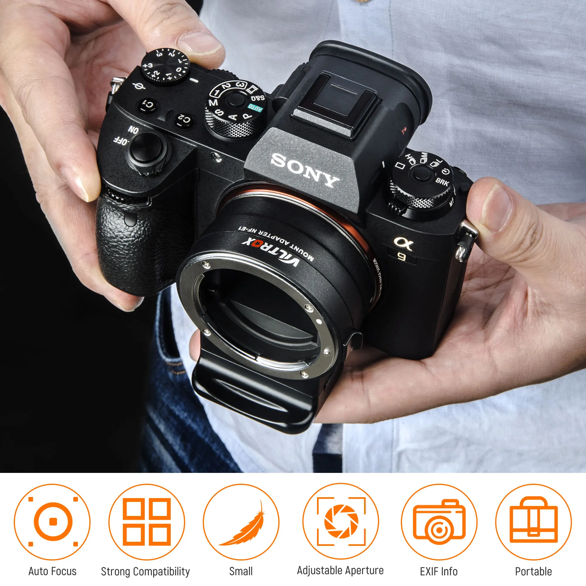 VILTROX NF-E1 AF Auto Focus Lens Adapter Ring Aperture Control for Nikon F Lens to Sony Camera E Mount A7RIII A7SII A7II A6500