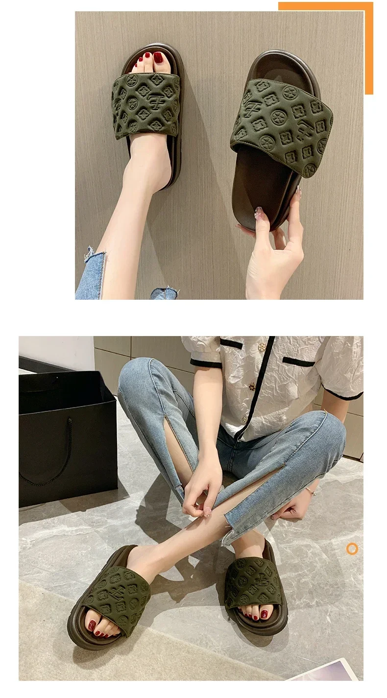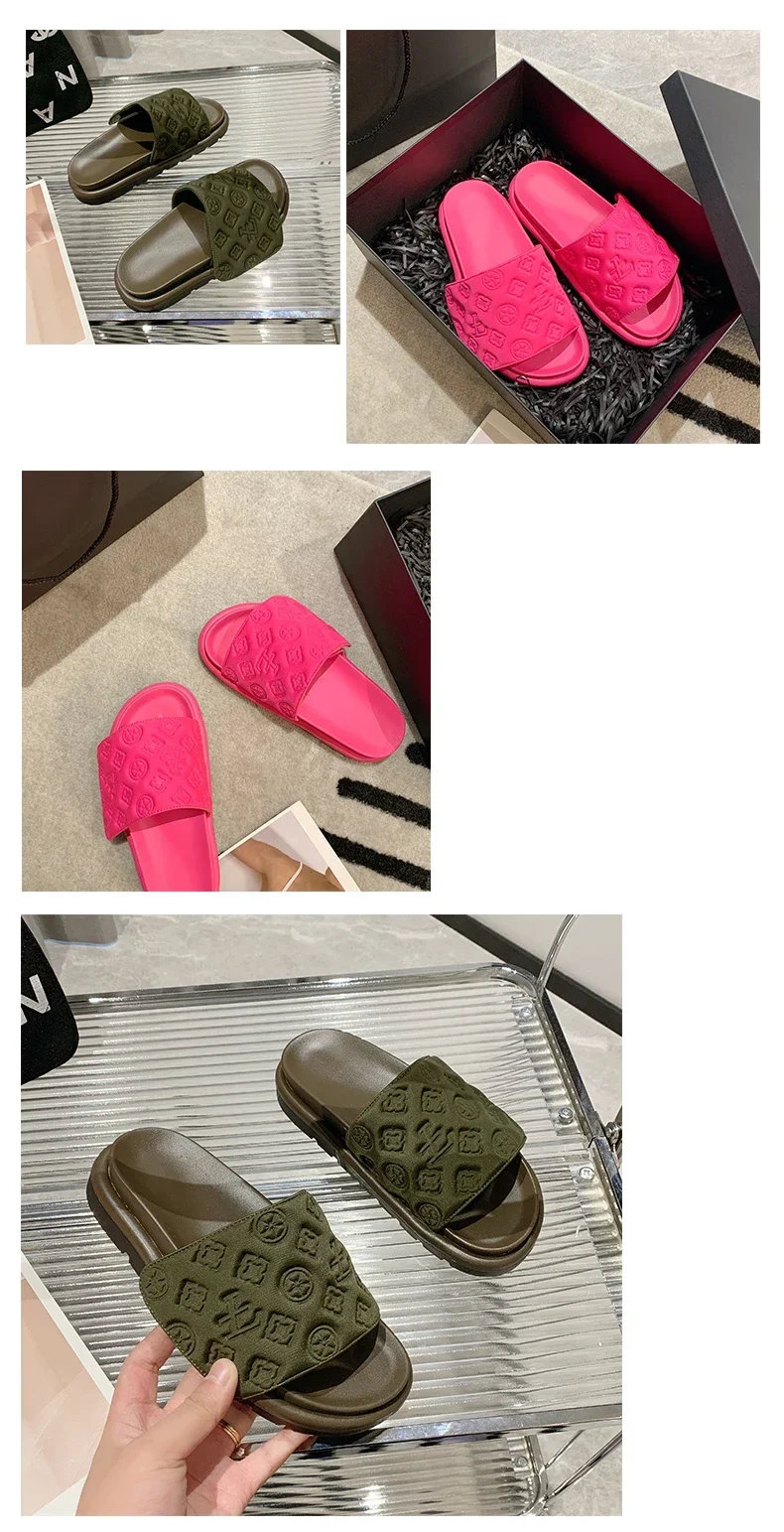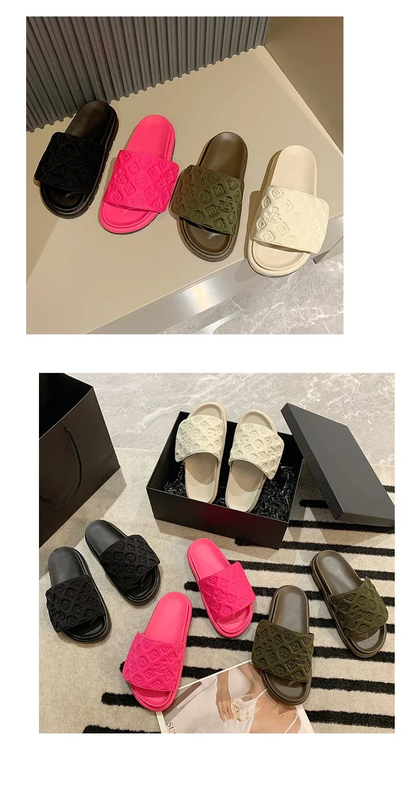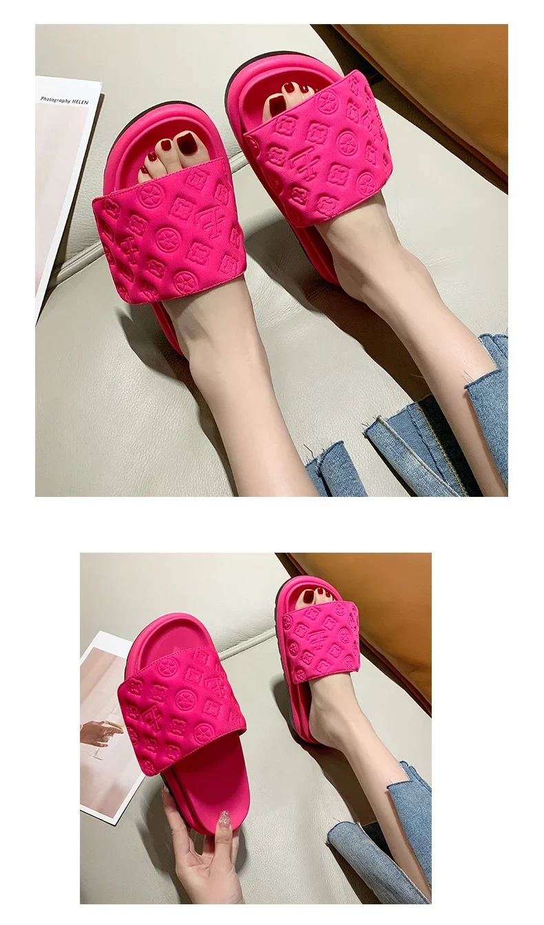 Women Magic Tape Flat Slippers 2024 Summer New Luxury Brand Platform Sandals Ladies Height Increase Flats Shoes zapatos de mujer
