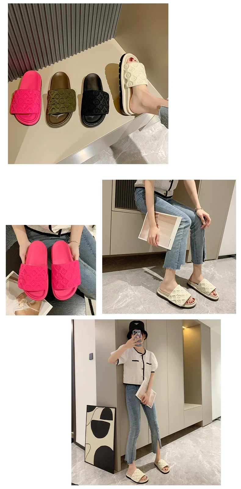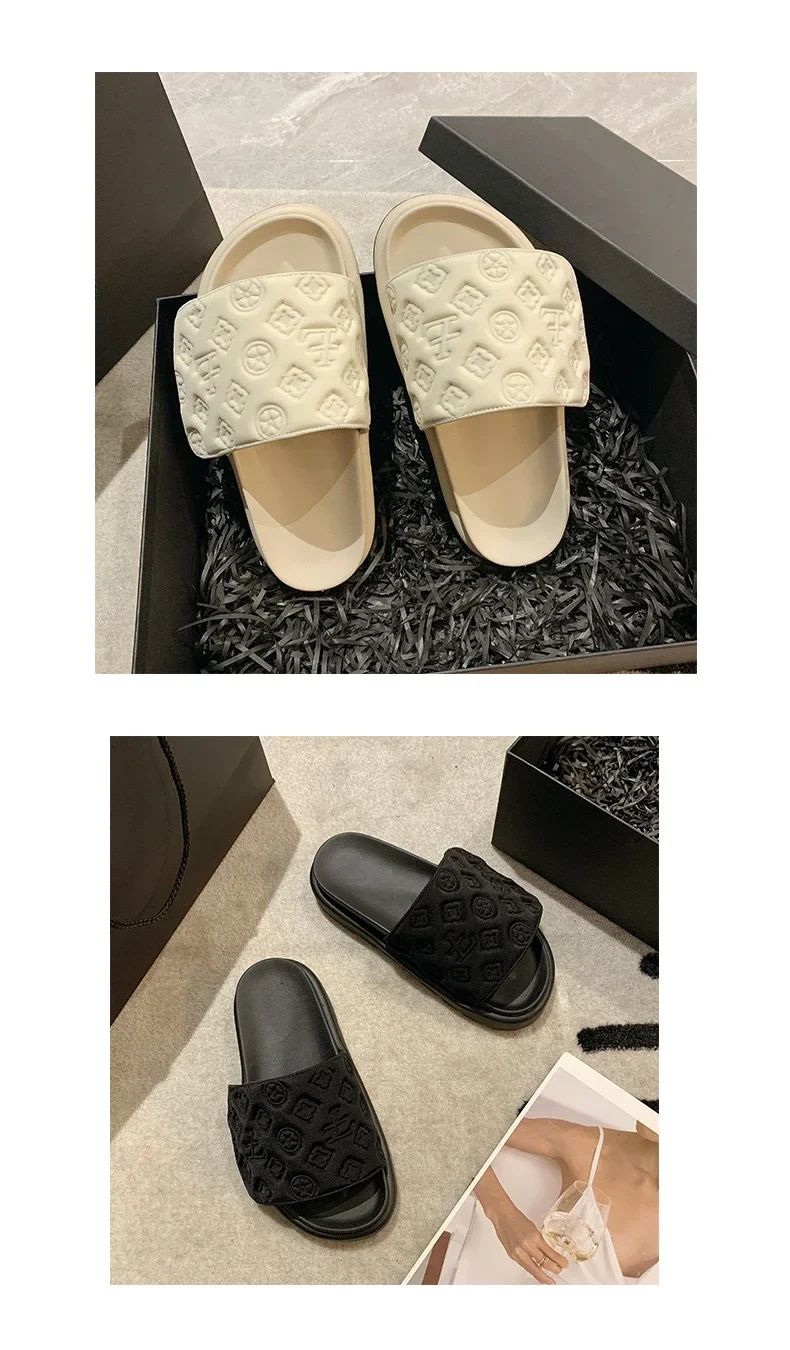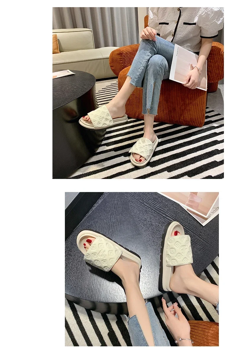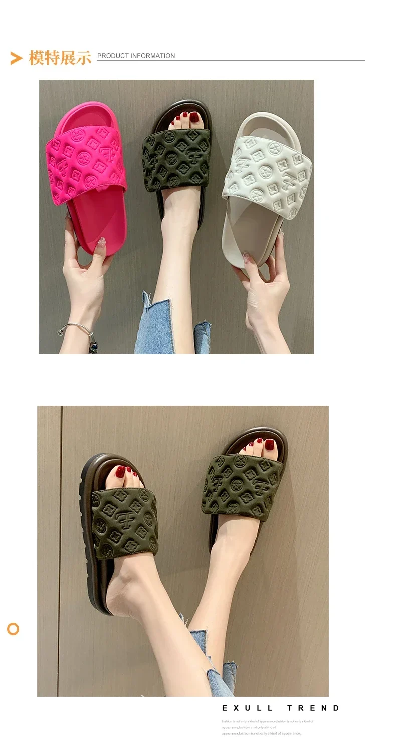 Women Magic Tape Flat Slippers 2024 Summer New Luxury Brand Platform Sandals Ladies Height Increase Flats Shoes zapatos de mujer