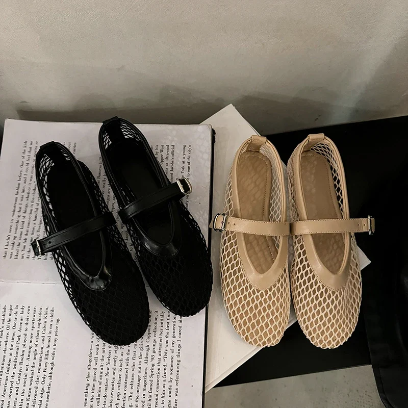 Women’s Round Toe Flat Shoes Designer Casual Trend Breathable Ballet Women’s Hollow Beach Sandals Mary Jane Shoes 2025 New
