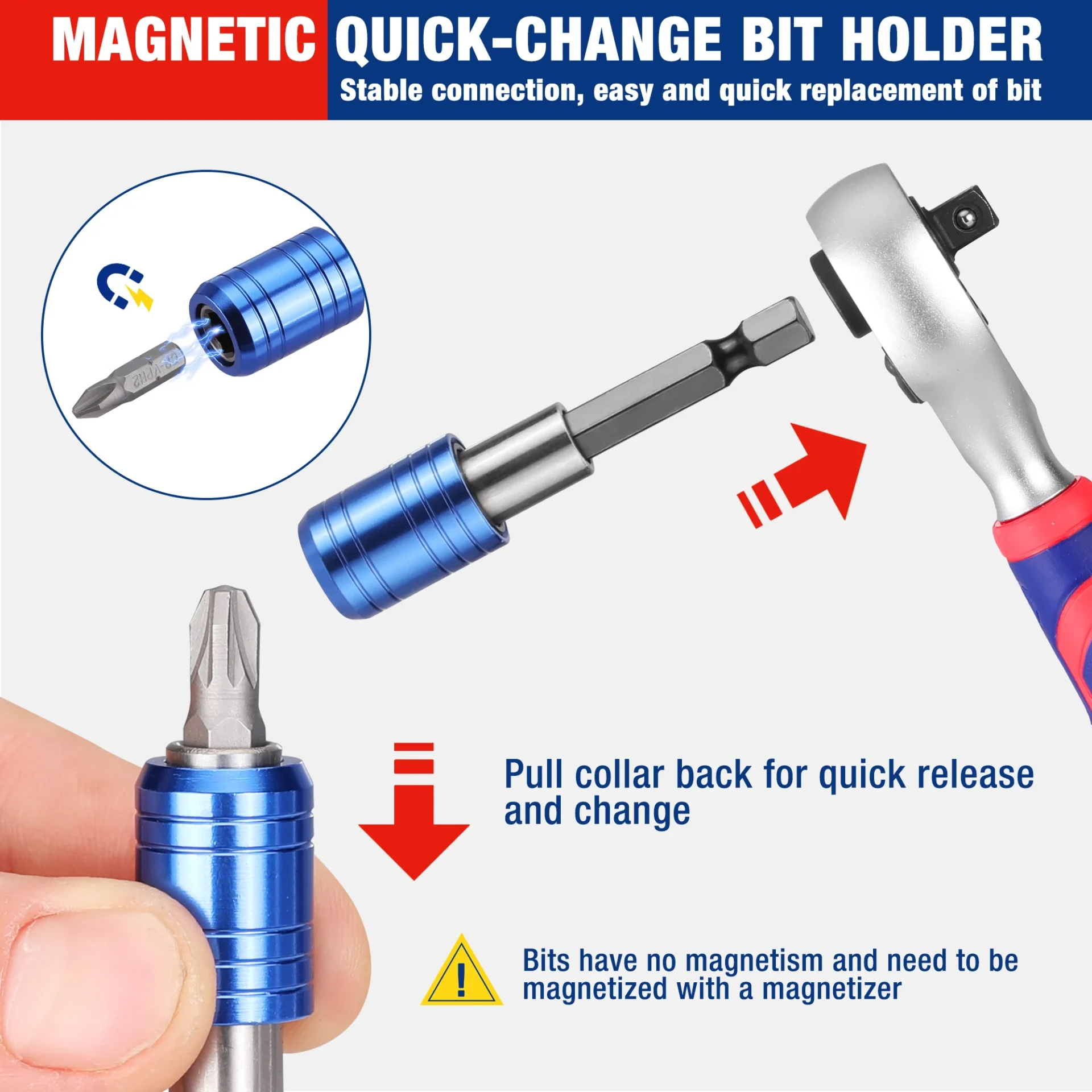 • Rust resistant & durability: Our socket bit sets are made of high quality chrome vanadium steel, heat treated to increase product durability, and the bright matte finish prevents tool corrosion and extends tool life.