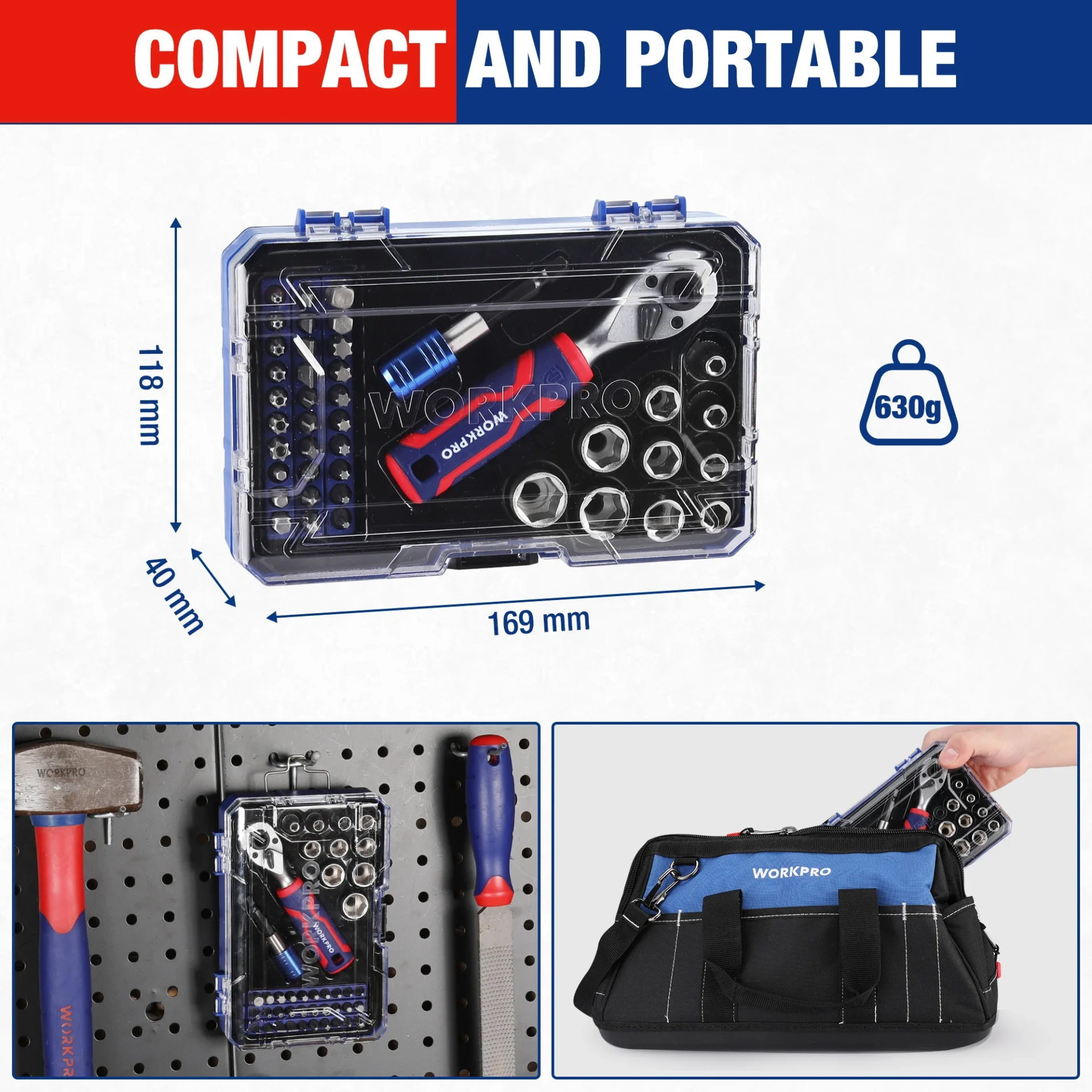 WORKPRO 1/4″ 42PCS Dr. Master Socket Set Metric with Dual Head Stubby Ratchet for Auto Repairing with Storage Case