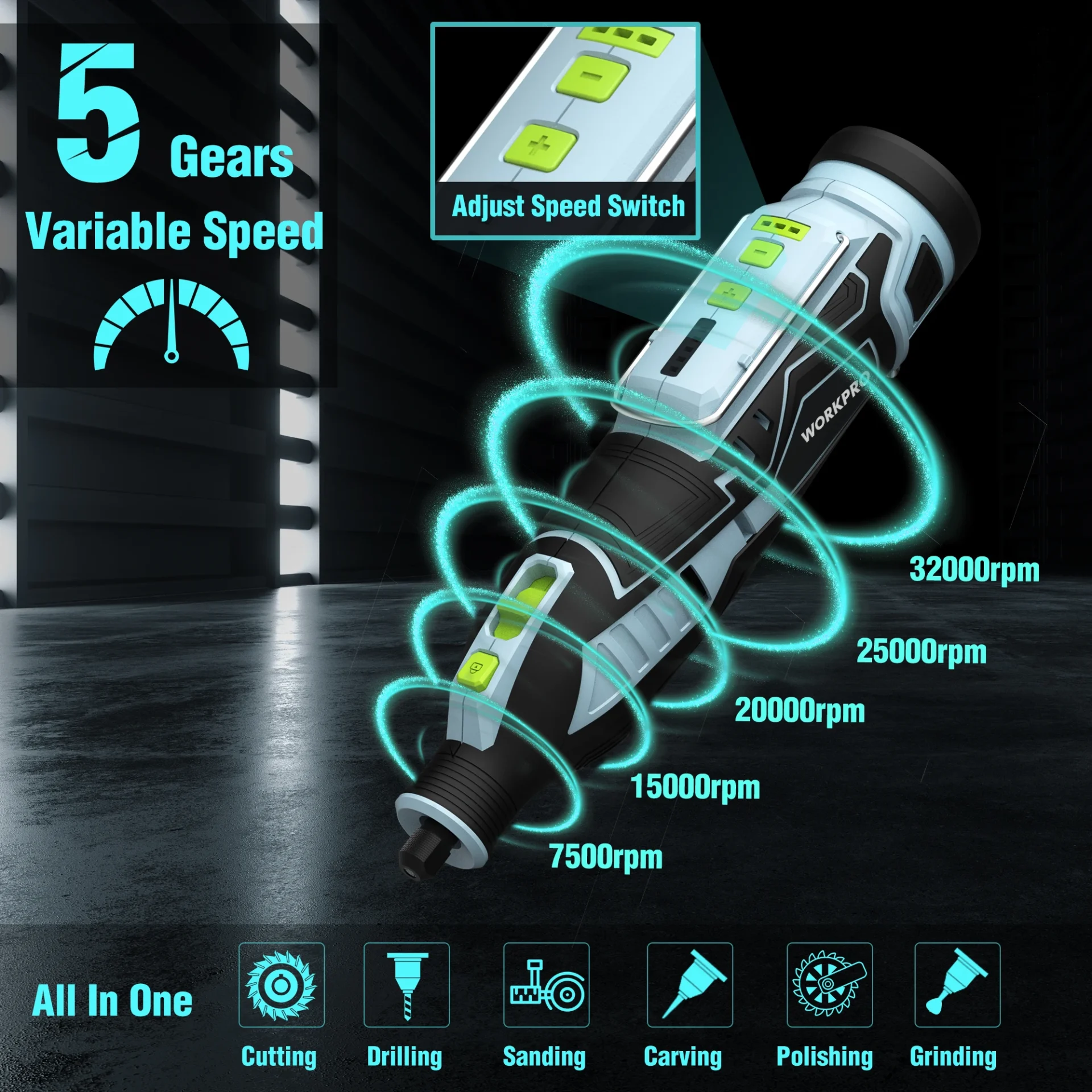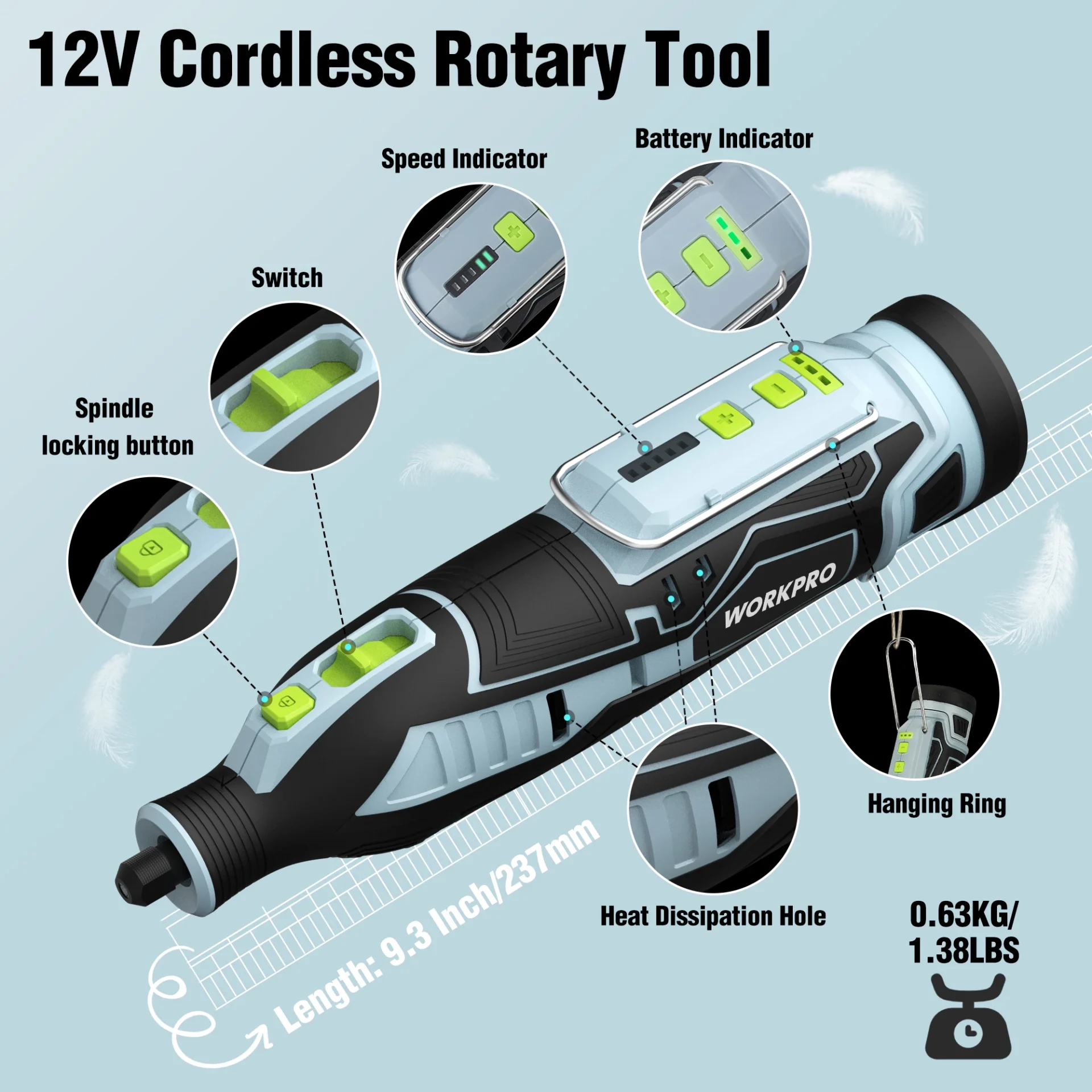 WORKPRO 12V Cordless Rotary Tool Kit, 5 Variable Speeds, 114 Easy Change Accessories,Multi-use Tool Carving,For Handmade and DIY