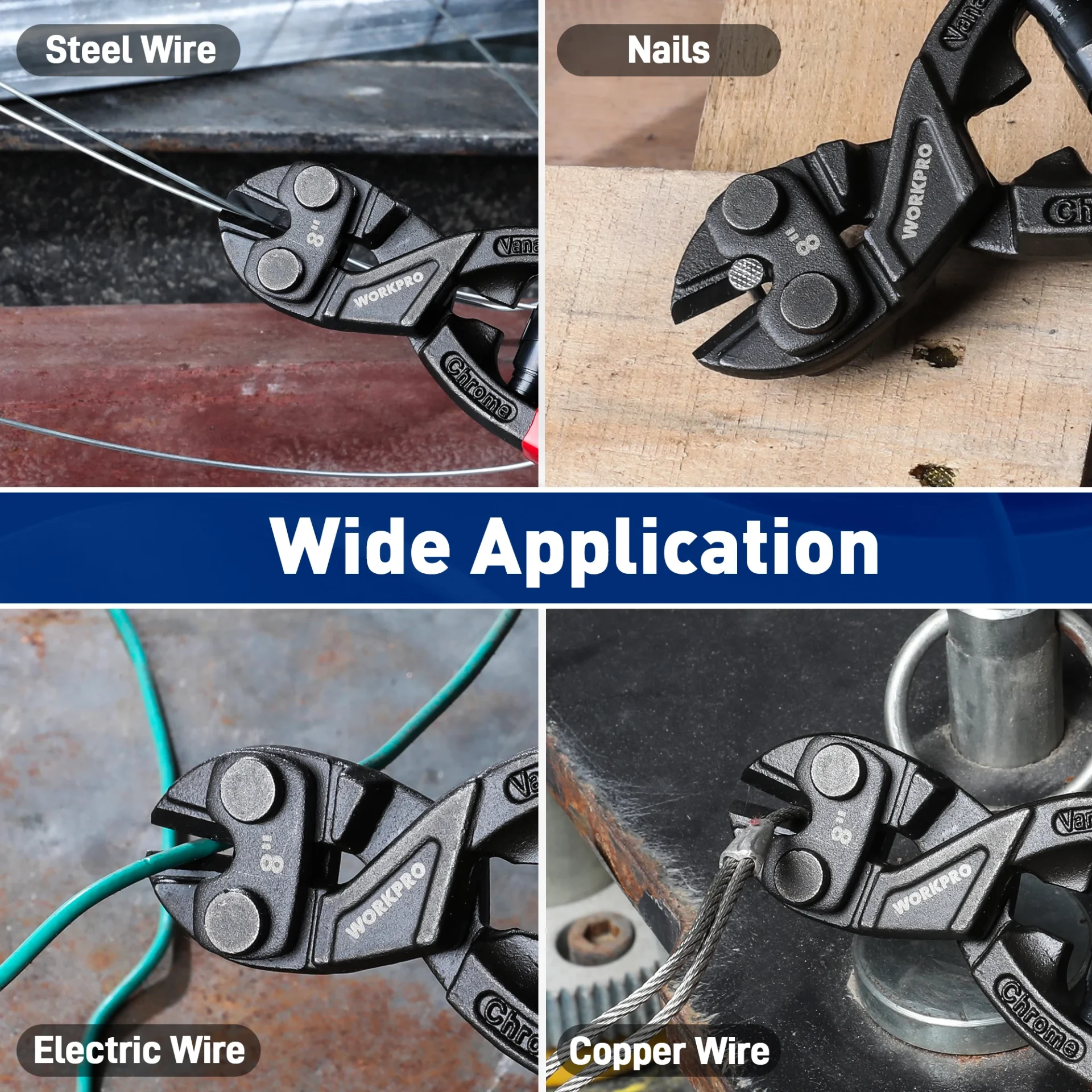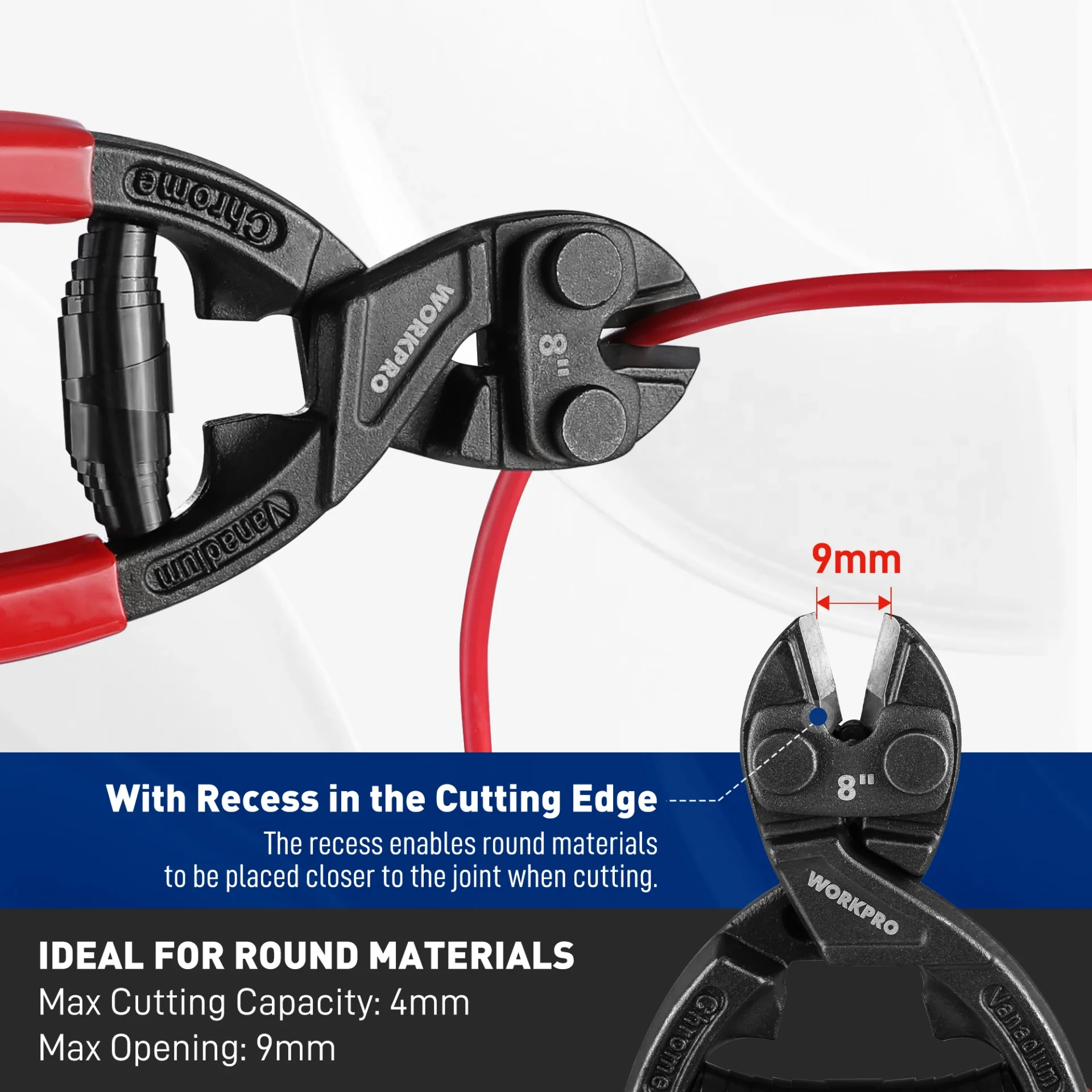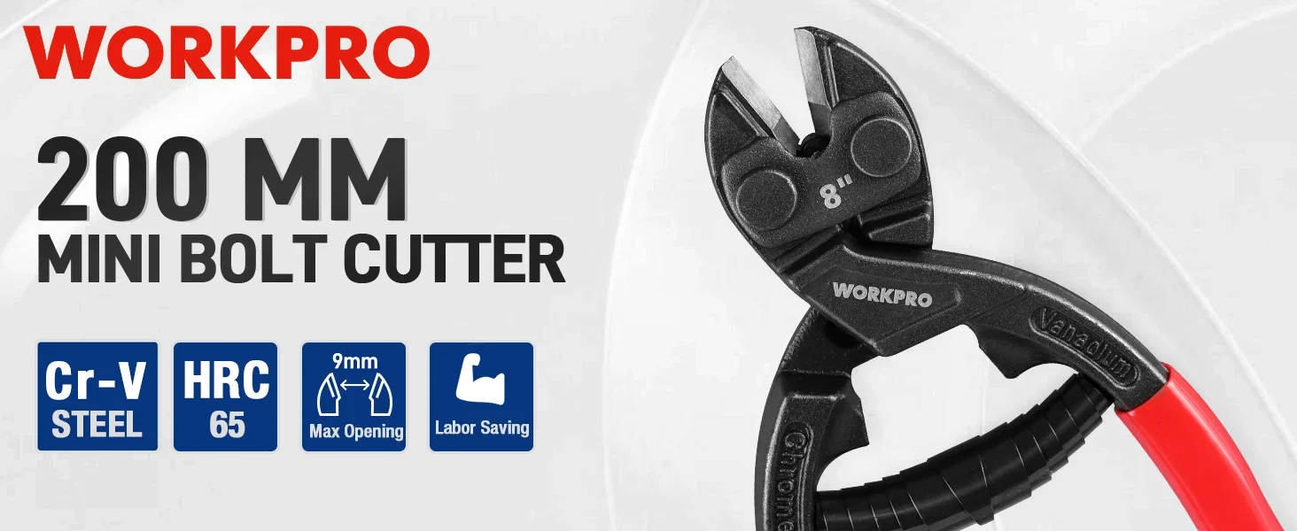 WORKPRO 200MM Bolt Cutter High Leverage Bolt Cutter with Notch and Spring Industrial Wire Cutter Repair Heavy Duty Hand Tools