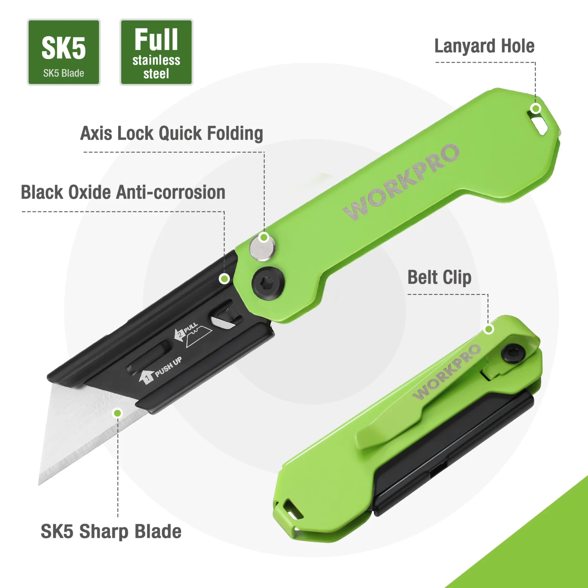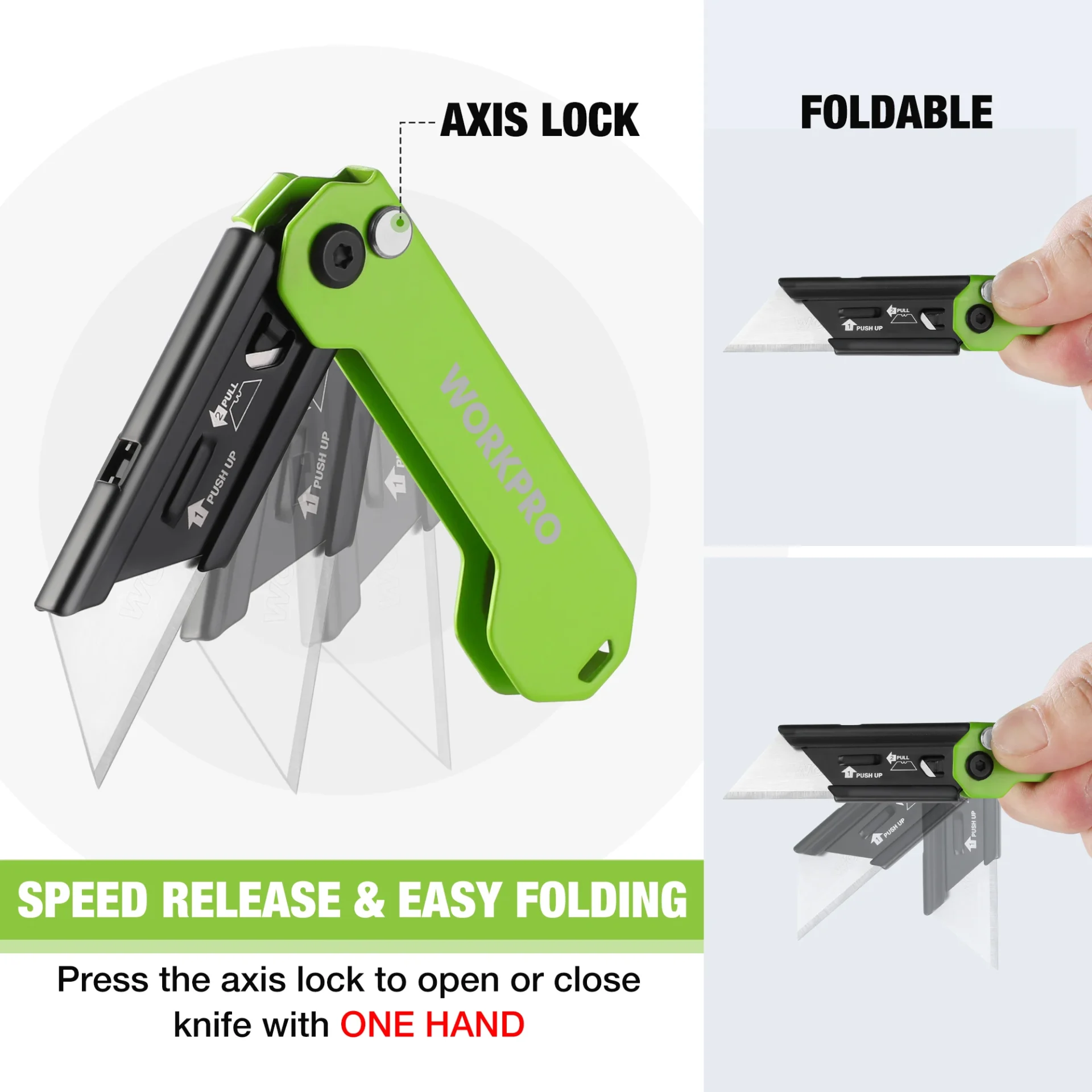 WORKPRO 3-Pack Folding Utility Knife, Razor Blade Knife Quick Change Blade Box Cutter, EDC Pocket Knife with Belt Clip