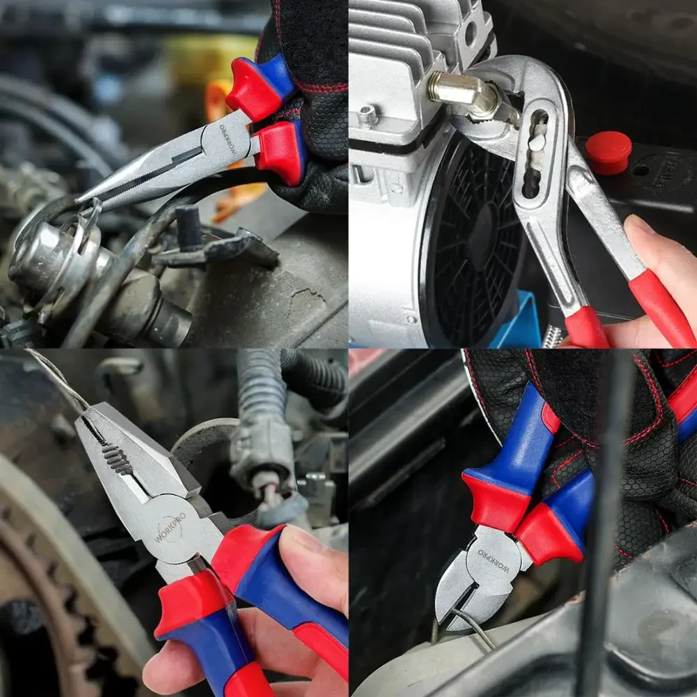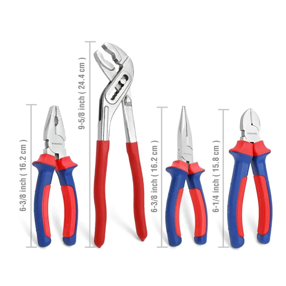 WORKPRO 4PCS Pliers Set Groove Joint Pliers Diagonal Pliers Water Pump Pliers Wire pliers