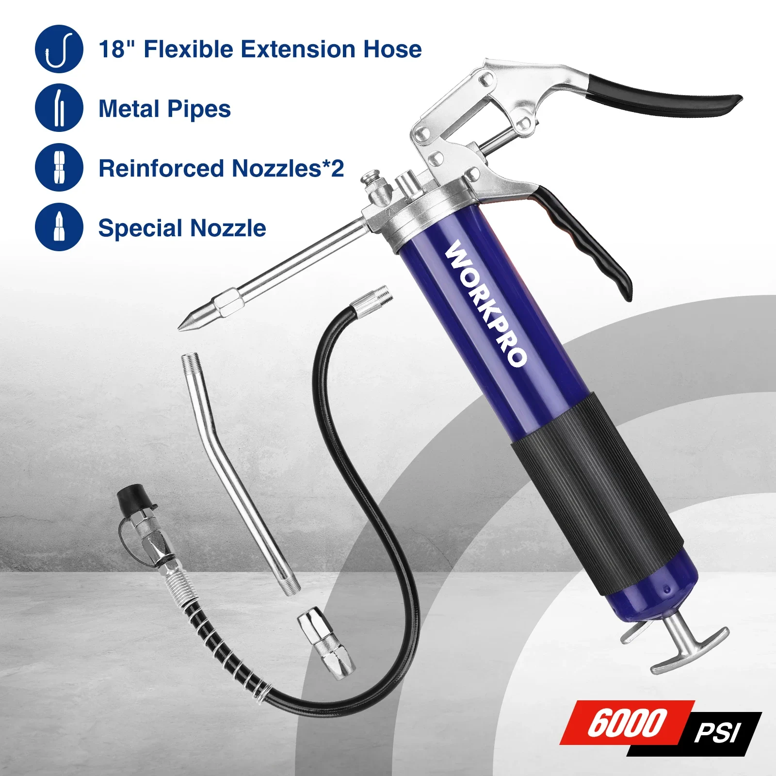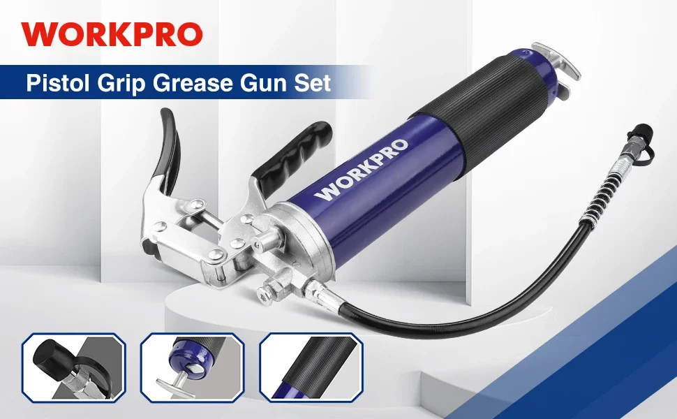 WORKPRO 6000PSI Grease Gun Mini Pistol Grip Gun Set Syringe for Oil And Car Lubrication SUV Trucks with Flexible Extension Hose