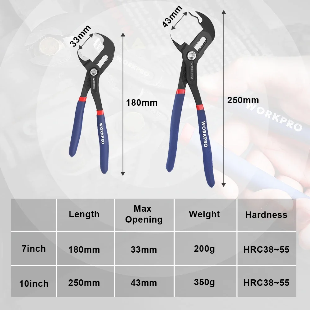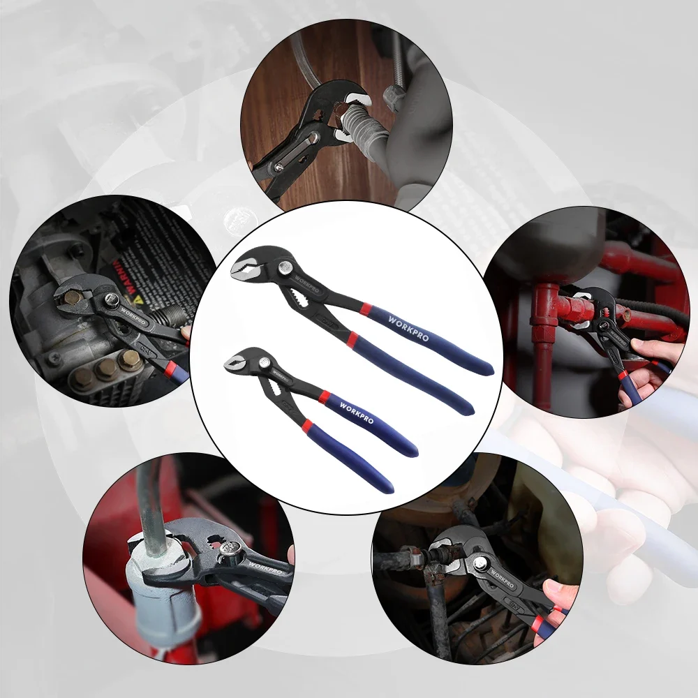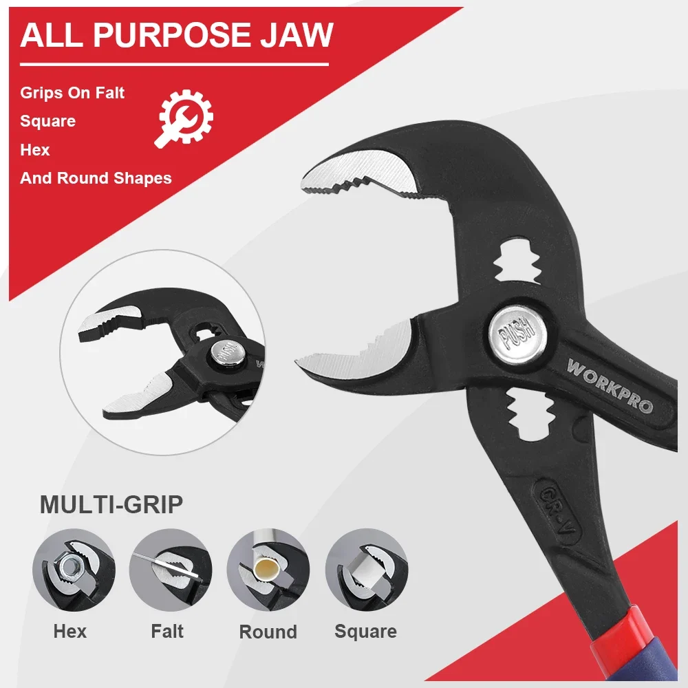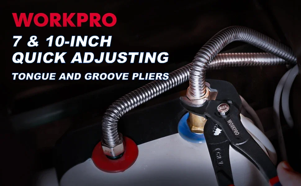WORKPRO 7″ & 10″ Water Pump Plier Set Adjustable Quick-release Push Button CR-V Steel Groove Joint Pliers For Multi-Use