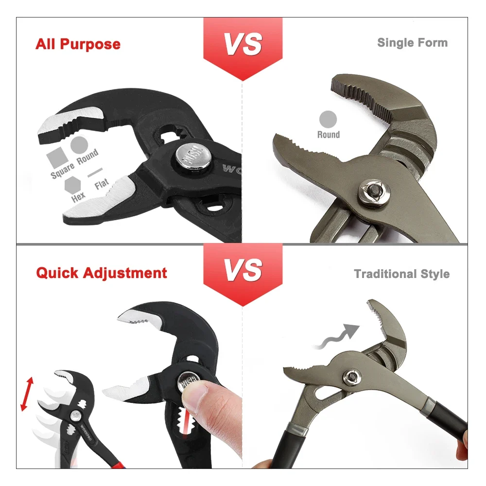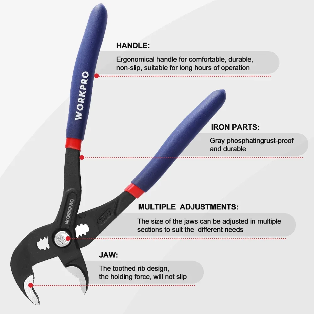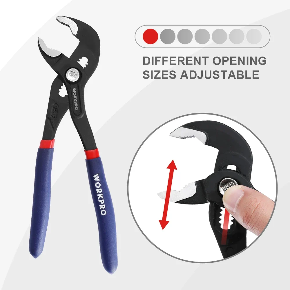 WORKPRO 7″ & 10″ Water Pump Plier Set Adjustable Quick-release Push Button CR-V Steel Groove Joint Pliers For Multi-Use