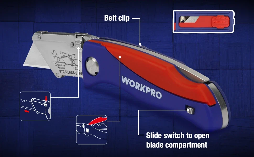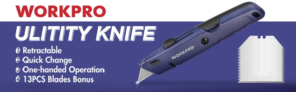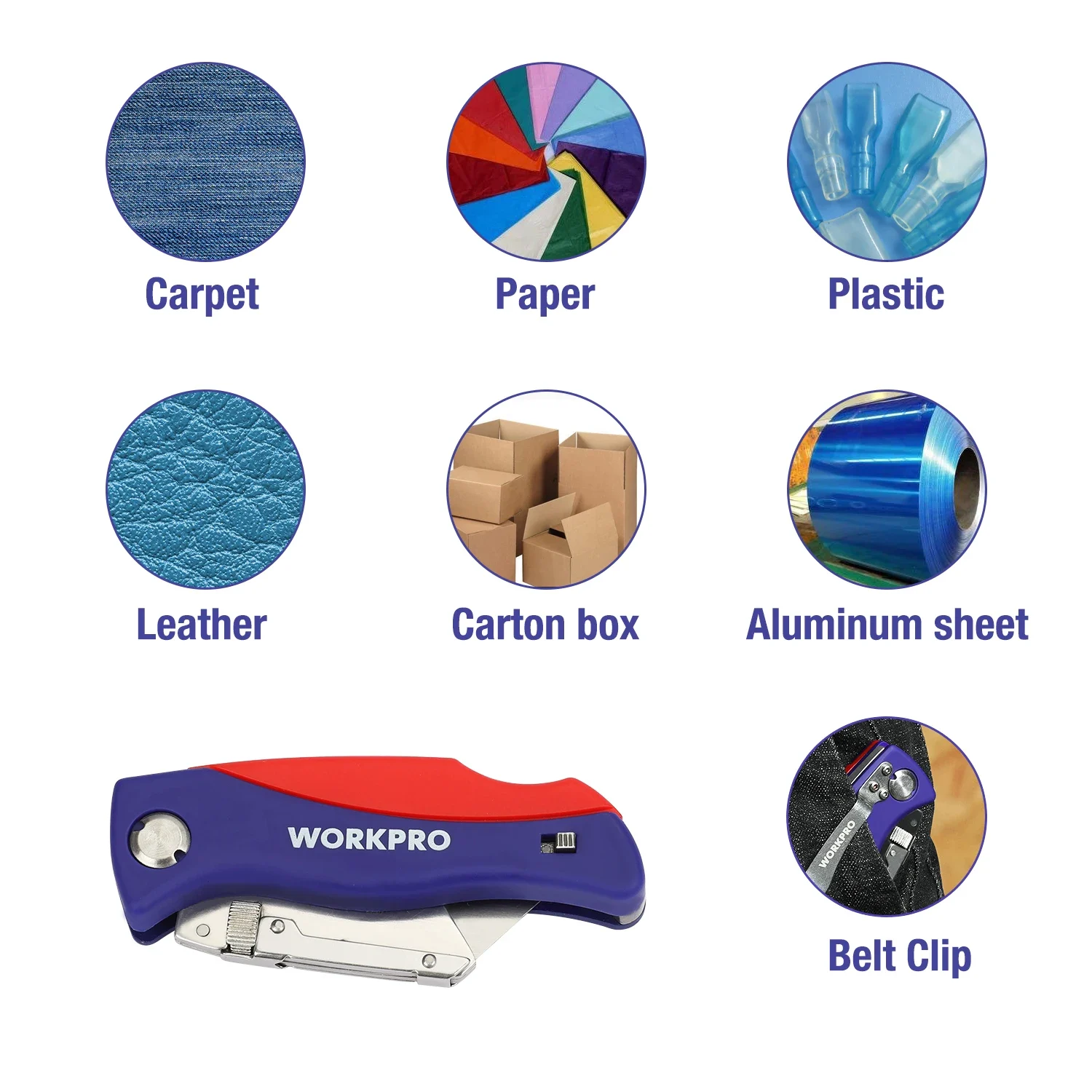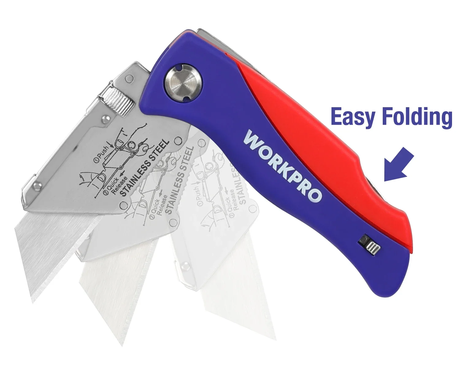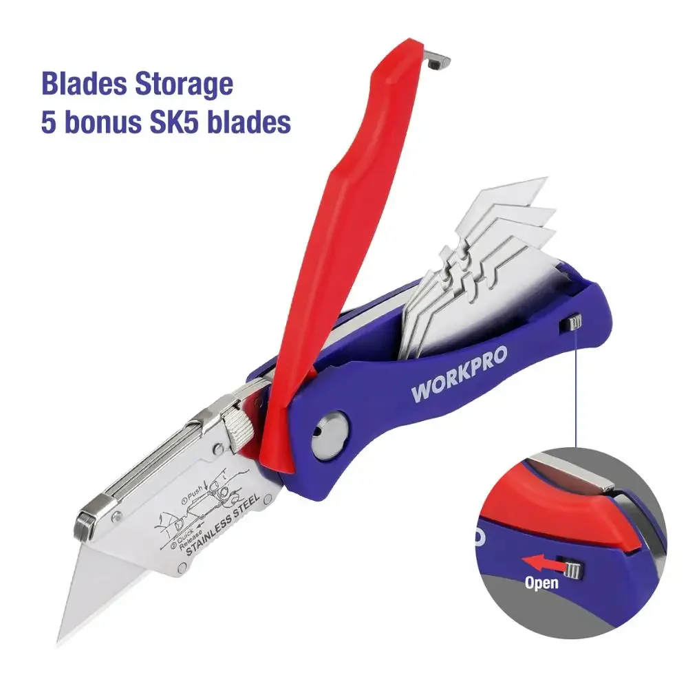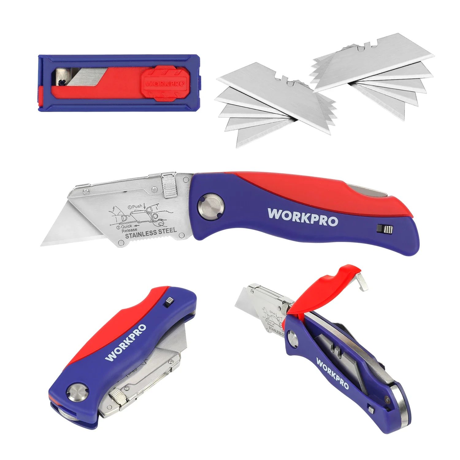 WORKPRO Folding Knife With 15 Blades Heavy Duty Stainless Steel Utility Knife Electrician Cutter Outdoor Hand Tools