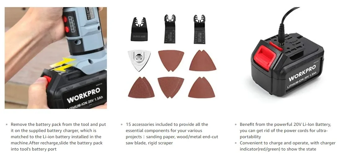 WORKPRO Power Oscillating Tools Electric Trimmer Saws Home DIY Lithium-ion Rechargeable Oscillating Multi Tools 18V/20V