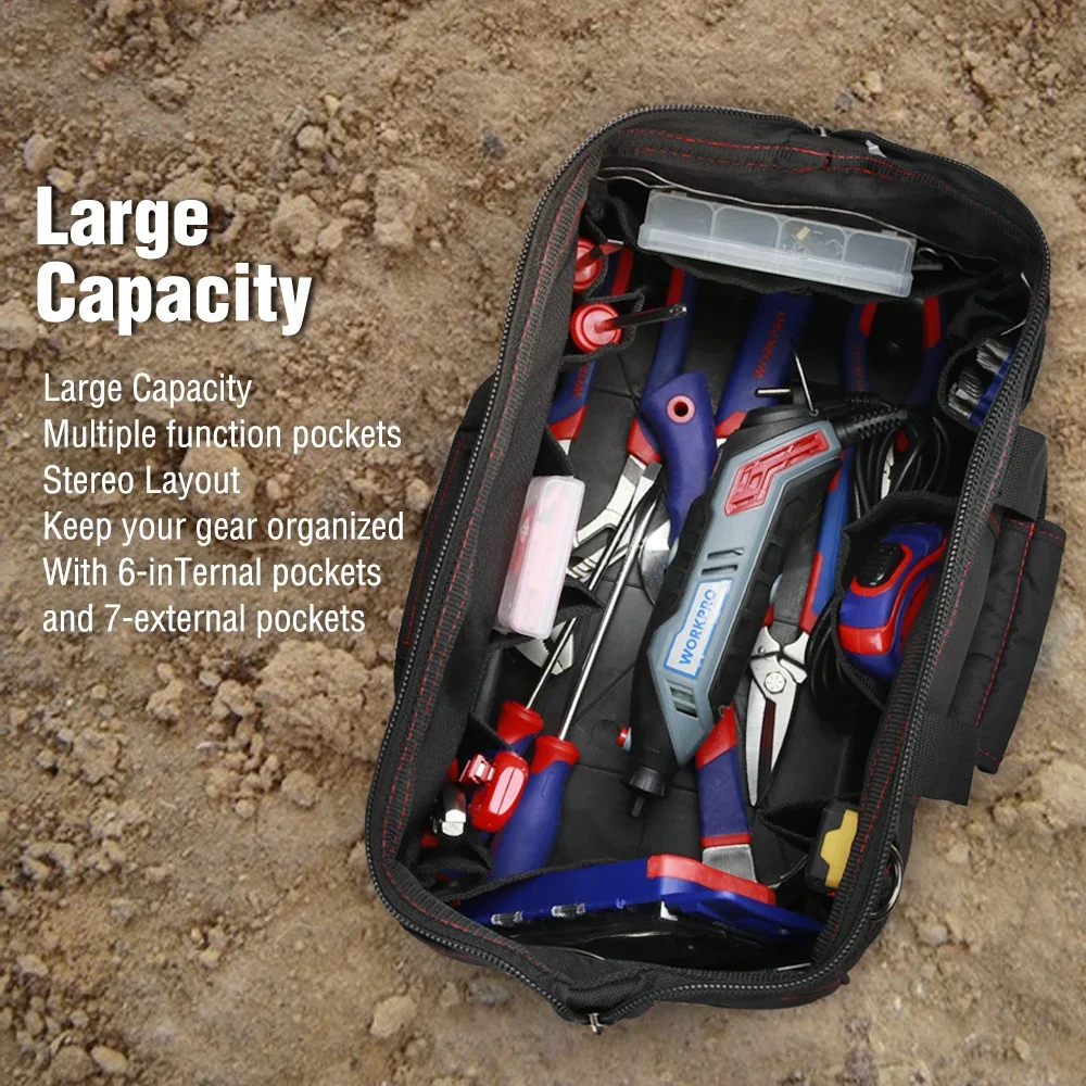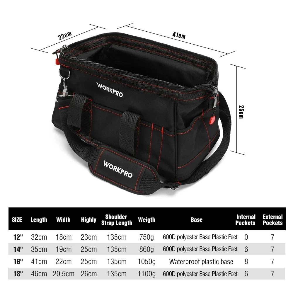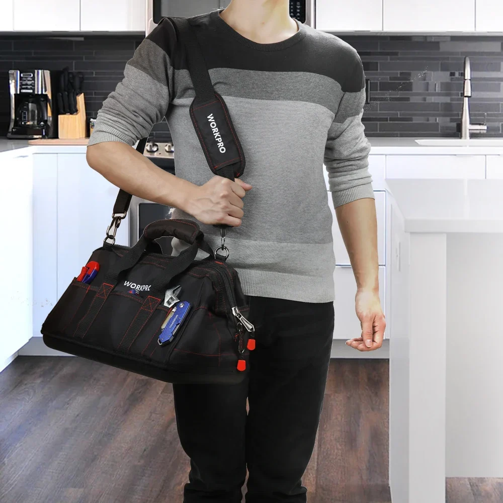 WORKPRO Tool Bag, Portable Waterproof Electrician Bag Multifunction Canvas Tool Organizer for Repair Installation HVAC