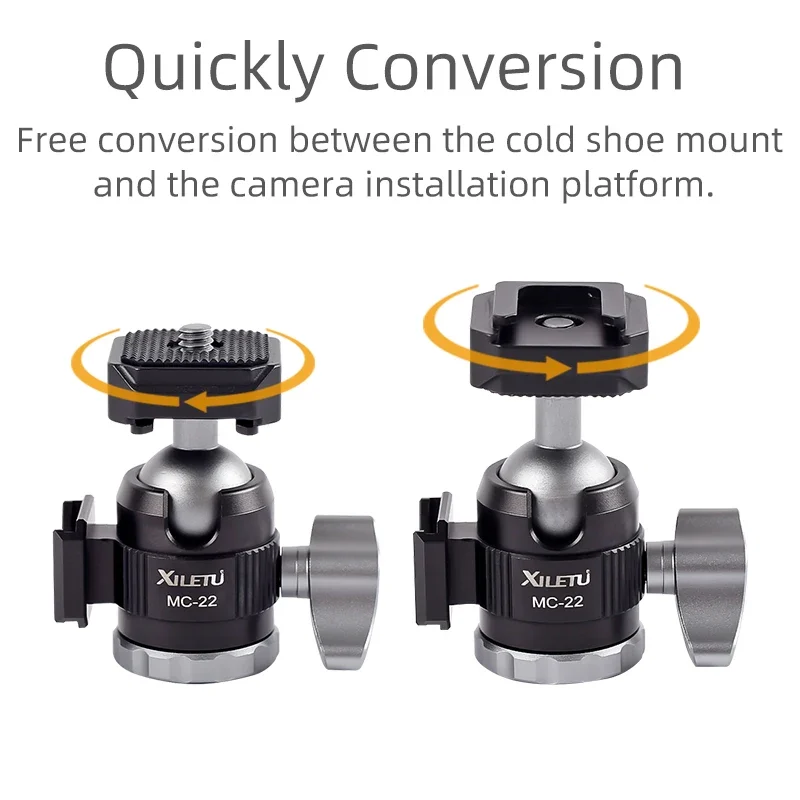 XILETU MC22 Mini Tripod Ball Head Video Stand 360° Swivel Cold Shoe Panoramic Heads for DSLR Camera Head Tripod Head Accessories