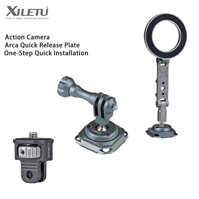 XILETU Sports Camera Quick Release Plate for DJI Action3/4 GoPro Insta360 Accessories Arca Tripod Head Magnetic Phone Holder