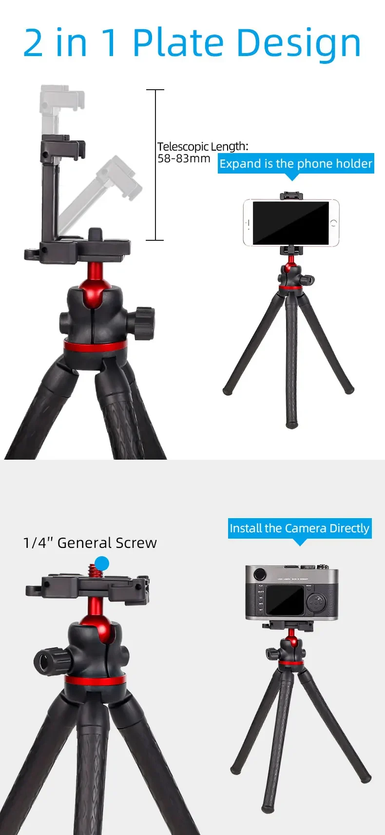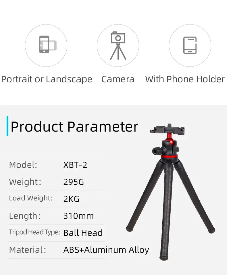 XILETU XBT2 Travel Flexible Octopus Tripod for Smartphone DSLR SLR Vlog Tripod for Camera Gopro Portable 2 in 1 Tripod Stand