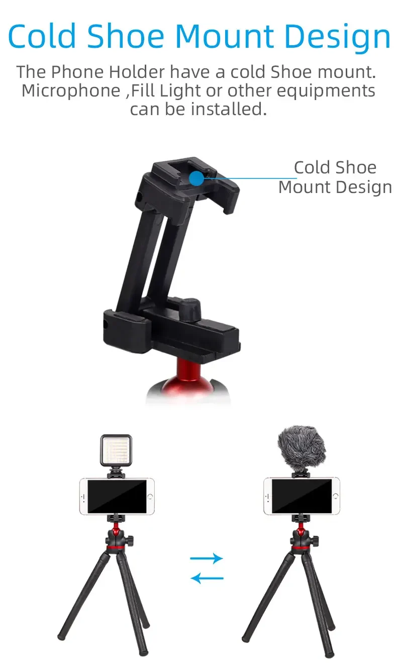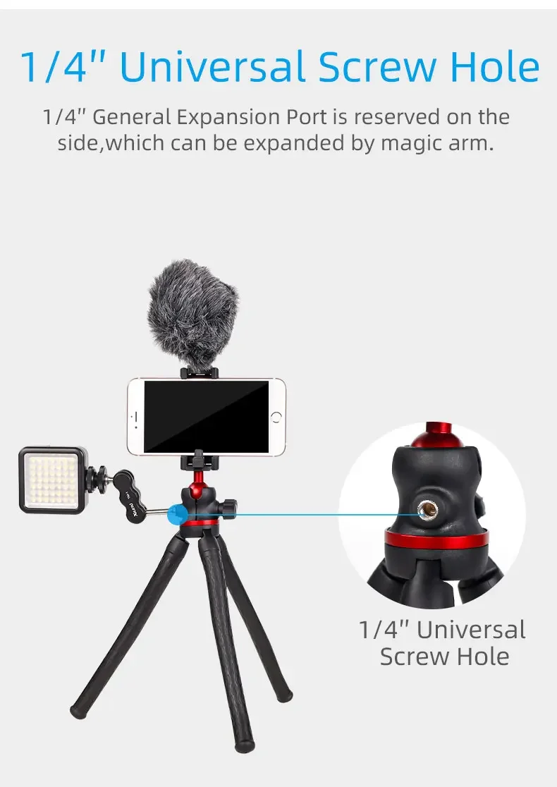 XILETU XTD30MC22 Mini Cold Shoe Ball Head Dual-Purpose 1/4 Screw Aluminum Alloy Camera Mobile Phone Tripod Selfie Stick