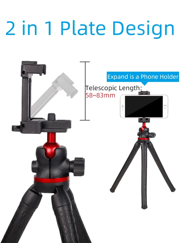 XILETU XBT2 Travel Flexible Octopus Tripod for Smartphone DSLR SLR Vlog Tripod for Camera Gopro Portable 2 in 1 Tripod Stand