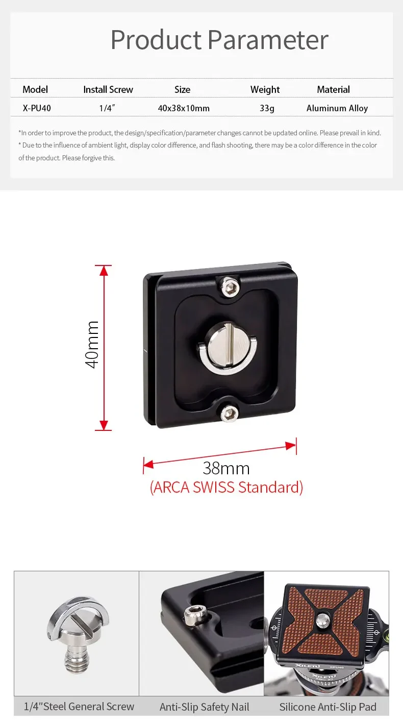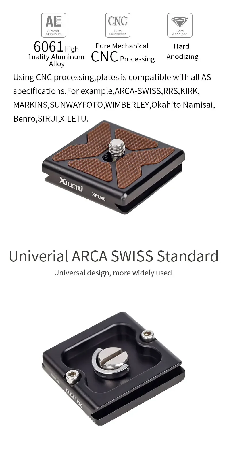 XILETU XPU40 Universal Quick Release Plate w 1/4″ General Screw ARCA SWISS Standard For Tripod Ball Head Cameras DSLRS SLRS
