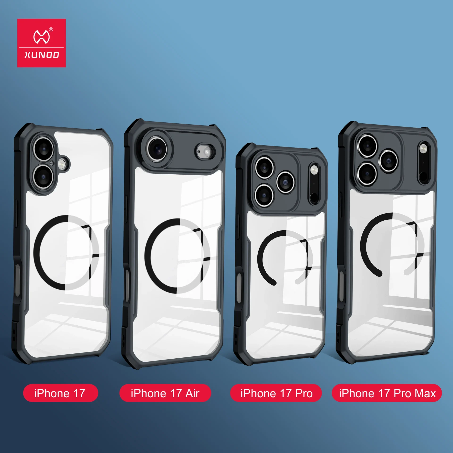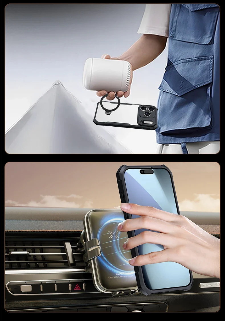 Xundd For iPhone 17 Case For iPhone Air 17 Pro 17 Pro Max Case Shock-Absorbing Acrylic&TPU Clear Back Cover with Magentic Holder