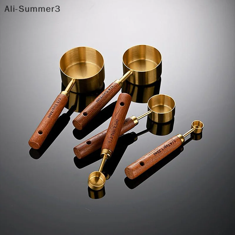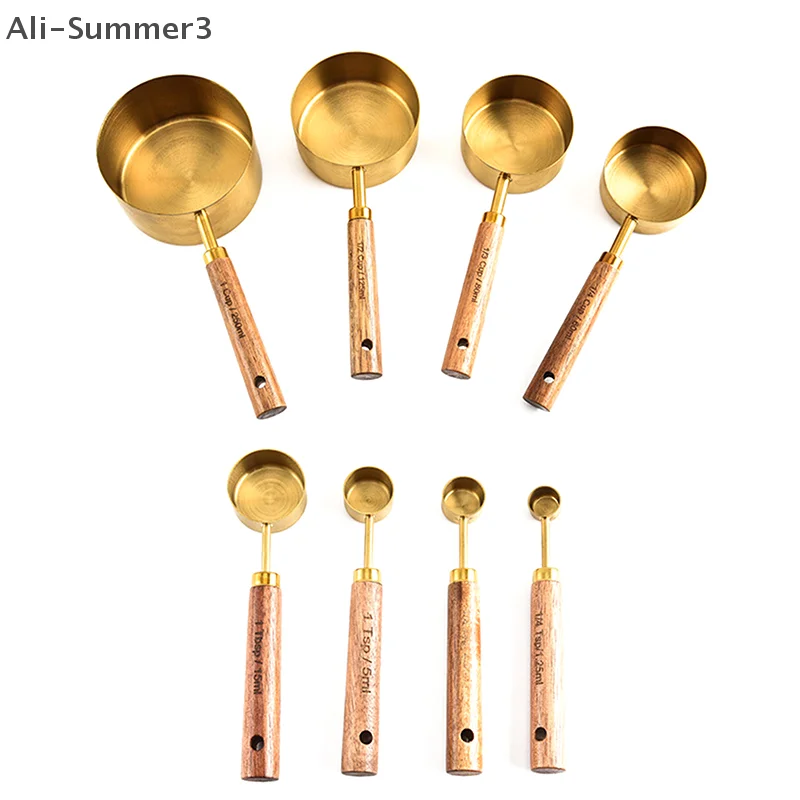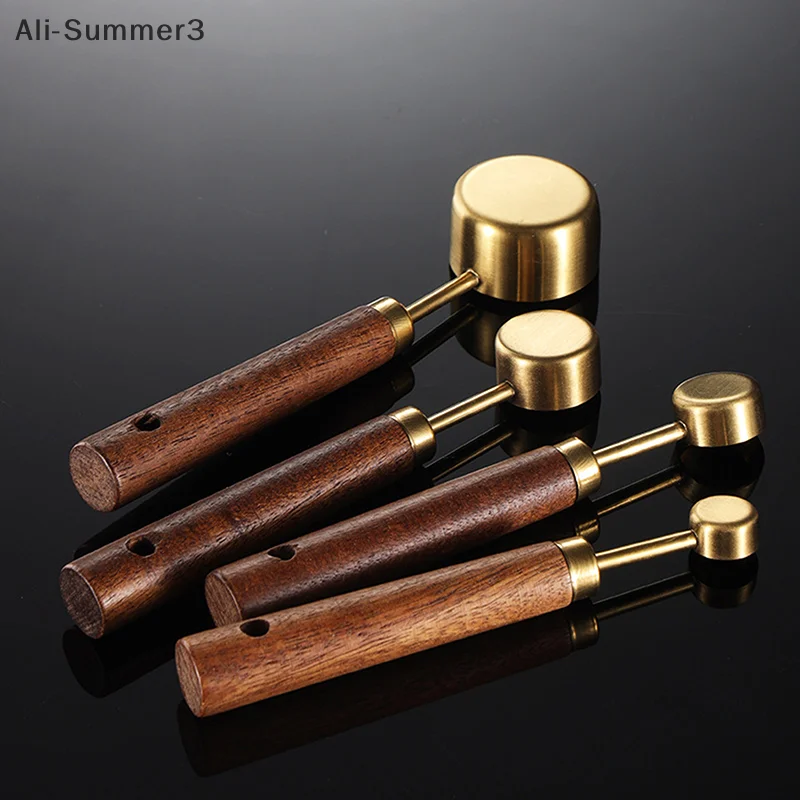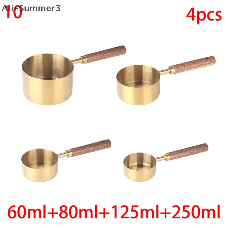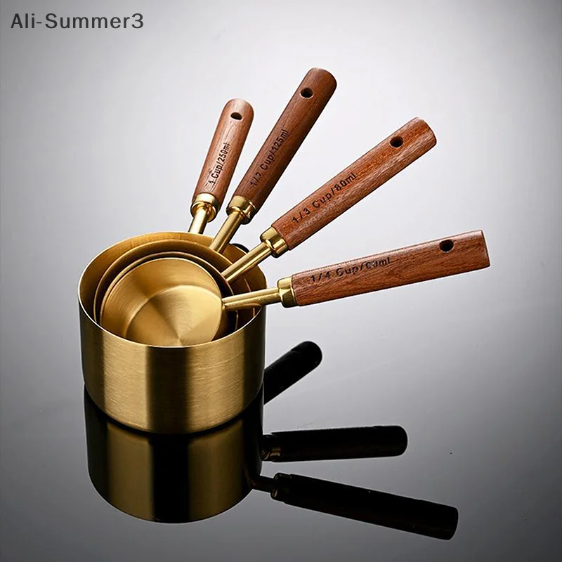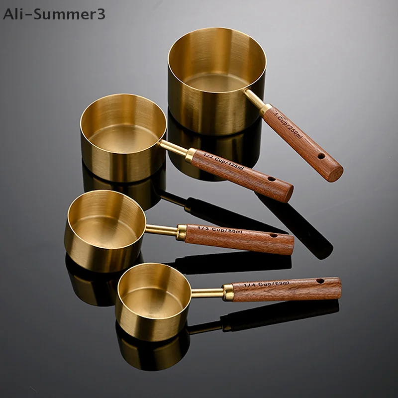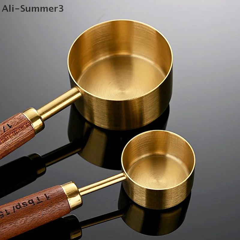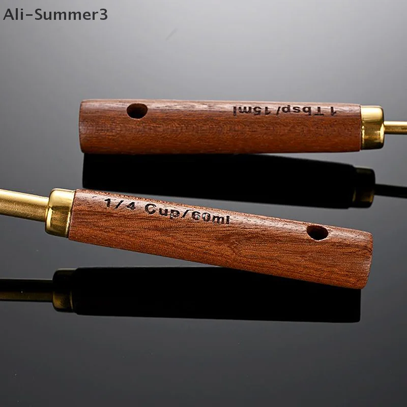 (YY)1Pc/4Pcs 2025 New Wooden Handle Stainless Steel Coffee Measuring Cups Spoons Baking Tools Set Bartending Scale Accessories